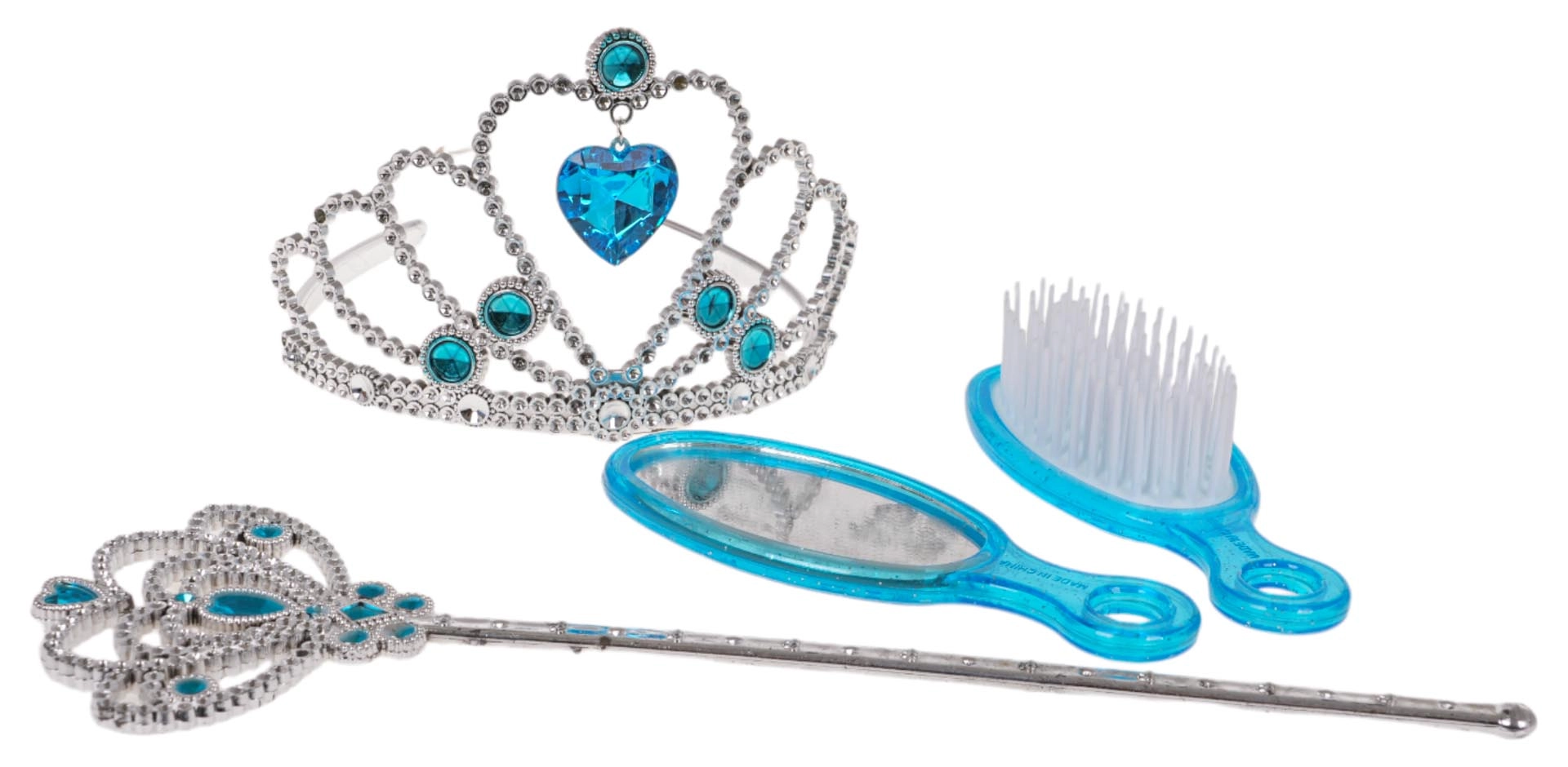 Võluv komplekt alates 3‑aastastele väikestele printsessidele rõõmustab kõiki muinasjuttude armastajaid. Komplektis on tiaara, võlukepp, peegel ja juuksehari õrna sinise kaunistusega. Ohutu teostus, kvaliteetsed materjalid ja võluvad sädelevad detailid ergutavad fantaasiat ja rollimänge.