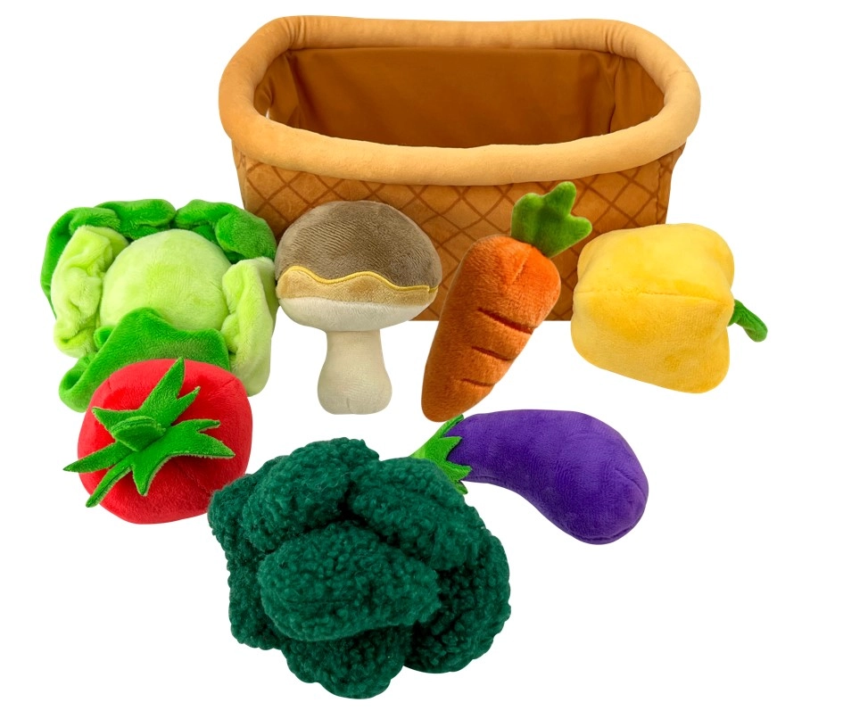 Sisaldab seitset erinevat köögivilja ja seene imitatsiooni mitmekesisemaks mänguks.