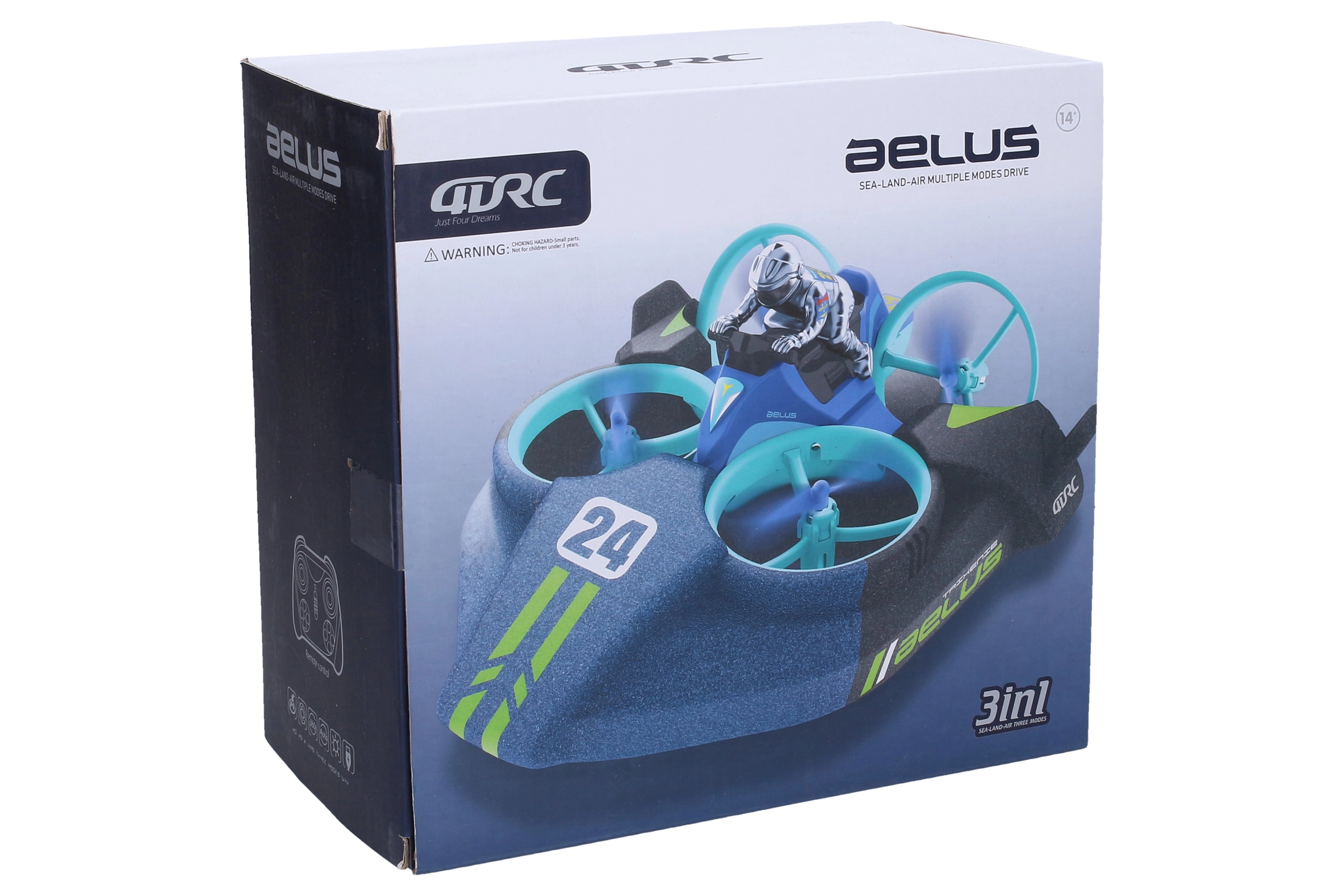Universaalne AELUS 3-ühes droon pakub lõbu maal, vees ja õhus. See pakub 3 sõidu- ja lennurežiimi, lihtsat kaugjuhtimist ning populaarseid funktsioone nagu 360° pööre ja naasmine lähtesse. Tänu kompaktsetele mõõtmetele 18 × 18 × 9 cm ja akupakile on see hetkega tegevuseks valmis.