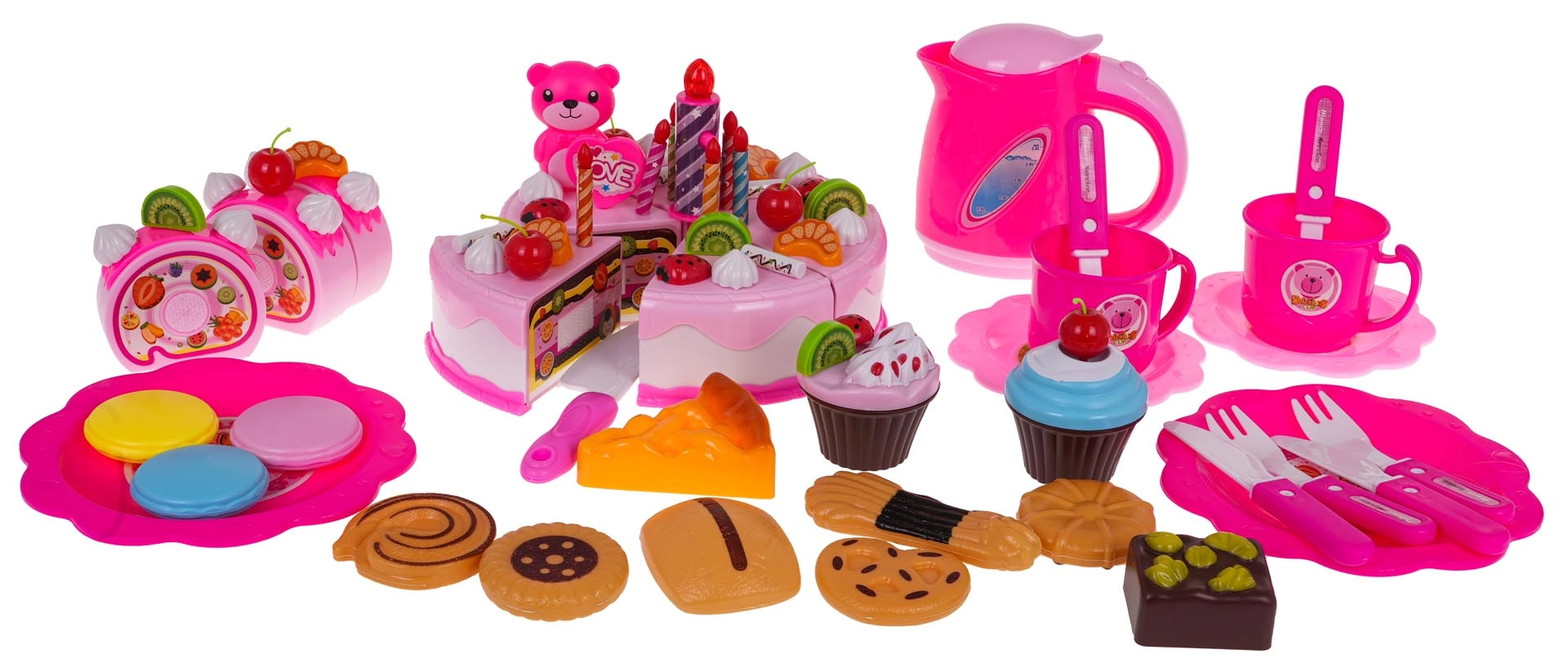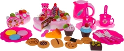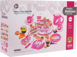 Lapsed saavad valada teed tassidesse, jagada tükid taldrikutele ja luua uusi magustoidukombinatsioone. Komplekt on valmistatud vastupidavast erksavärvilisest plastist ja sobib lastele alates 3. eluaastast. Arendab suurepäraselt koostööd, suhtlemist ja motoorseid oskusi.