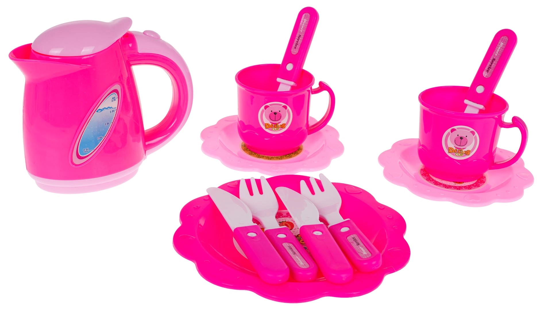 Teekann, tassid lusikatega, taldrikud ja söögiriistad muudavad lastetoa teetoaks. Suurepärane rollimängudeks külalistega ja sünnipäevapidudeks.
