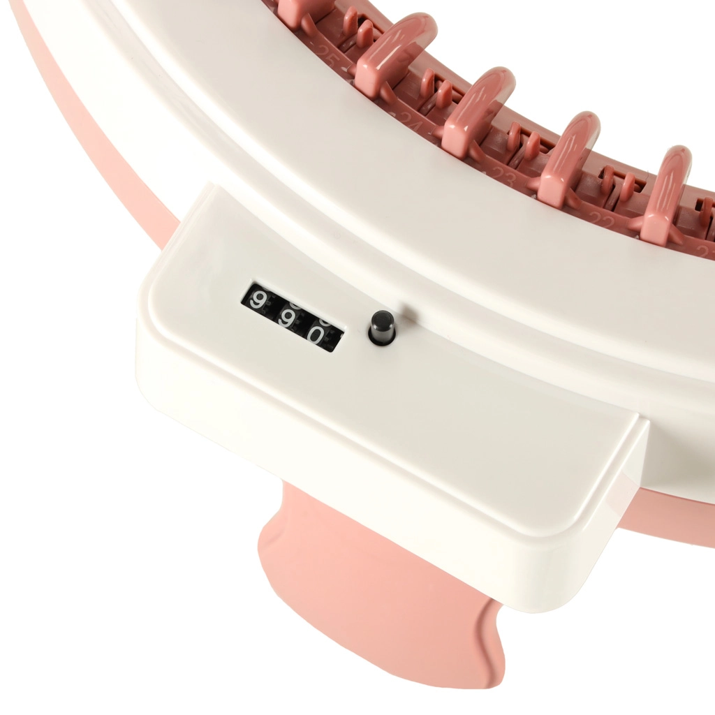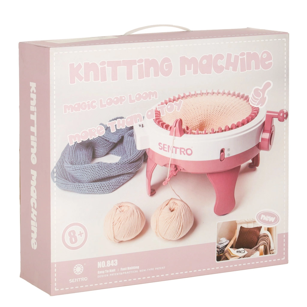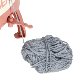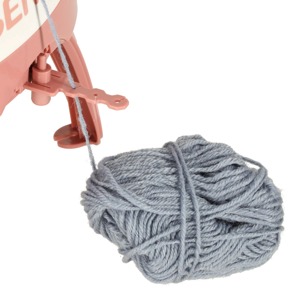Komplekti kuuluvad 4 värvilist lõngakera (tumehall, helehall, roosa, beež), erineva suurusega nõelad ja heegelnõel lihtsaks viimistlemiseks ja kokkuõmblemiseks. Stabiilsed jalakesed ja iminapad aitavad masinat töö ajal kindlalt paigal hoida.
