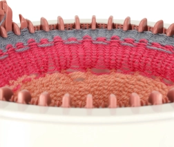 Tihke nõelapaigutus tagab ühtlased silmused ning võimaldab luua nii torusid kui ka paneele mütside, sallide ja aksessuaaride jaoks.