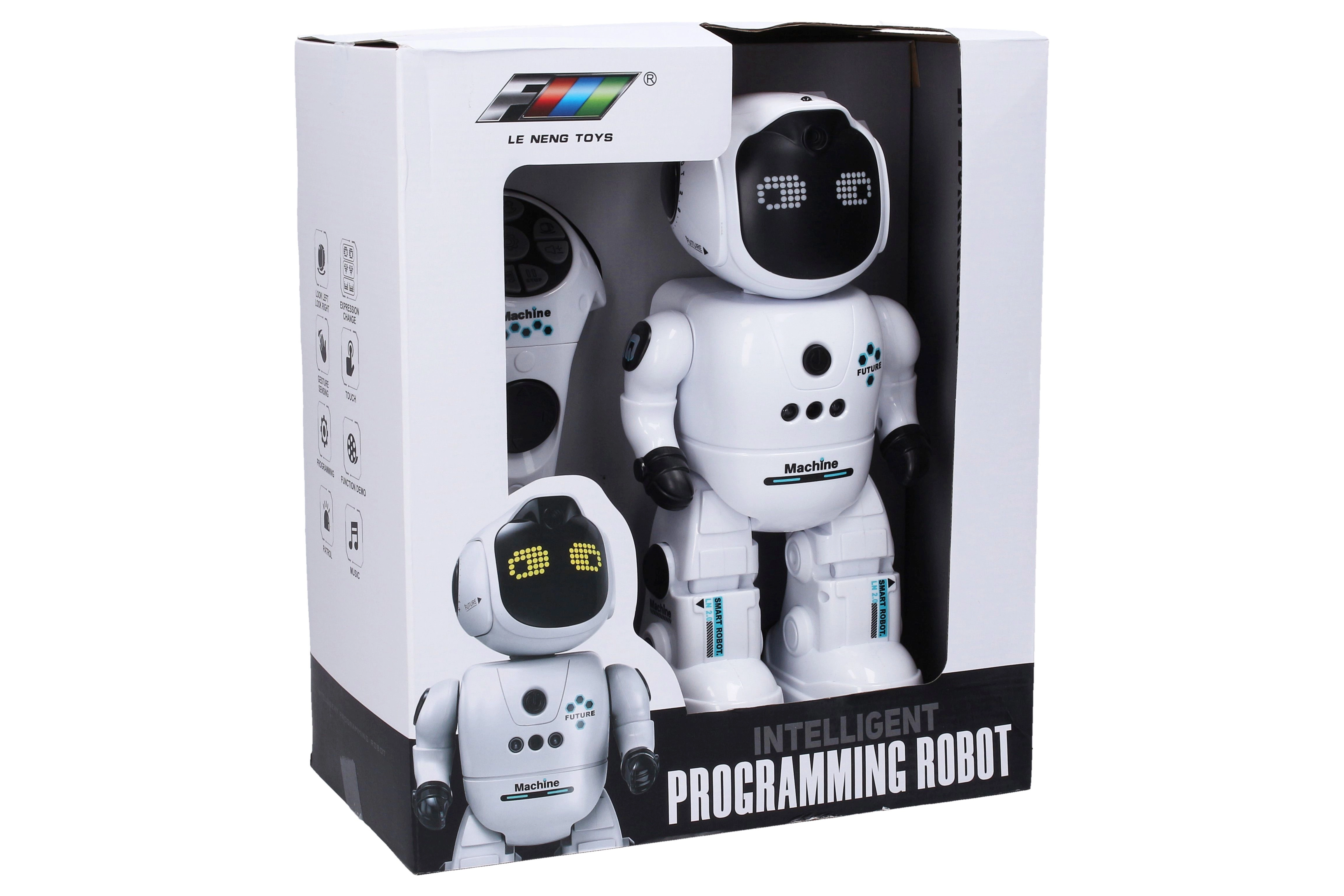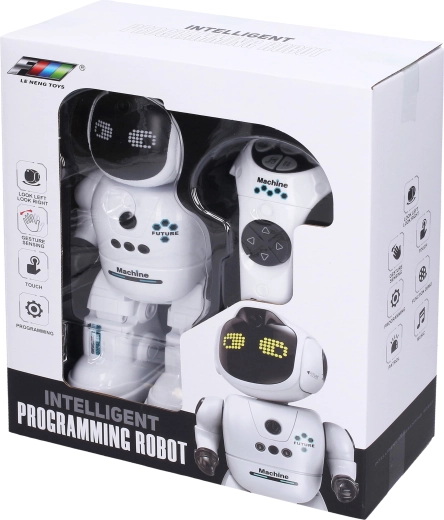 Robot pakub programmeerimisrežiimi, demo‑näiteid, helisid ja muusikat koos helitugevuse seadistusega. Juhtimine on intuitiivne – piisab žestist, puudutusest või nuppude vajutusest. ON/OFF‑nupp asub mugavalt tema rinnal. Laadimine toimub USB‑kaabli kaudu (kuulub komplekti), pulti tuleb lisada 2× AAA patareid (ei kuulu komplekti).