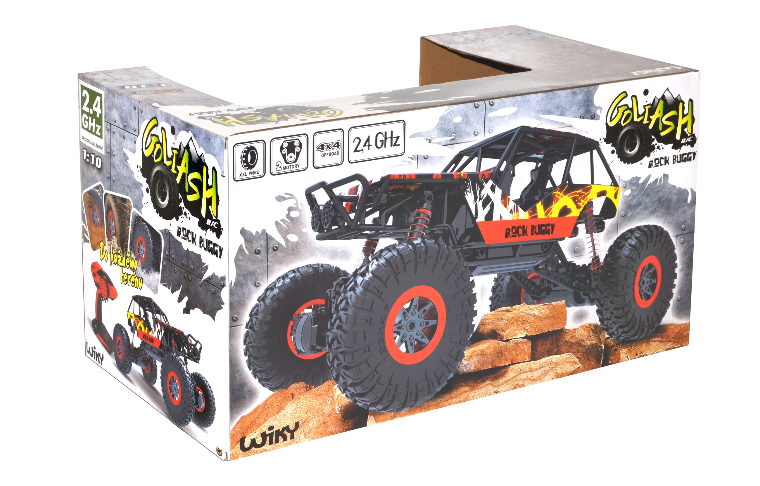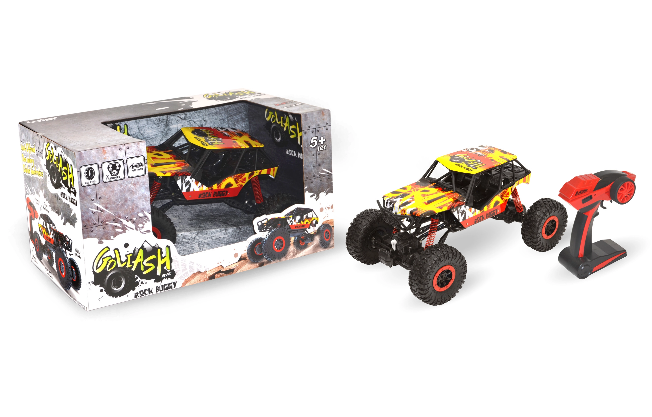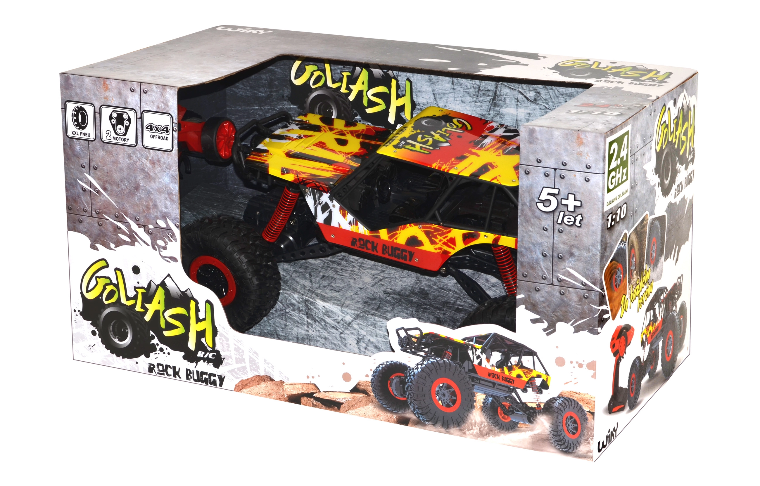 Maalikindel RC-auto Rock Buggy Goliash saab hakkama iga väljakutsega. Tänu 4x4 veole, XXL haarduvatele rehvidele ja vastupidavale vedrustusele vallutab see liiva, lume ja pori. Saavutab kiiruse kuni 10 km/h, on eesmised LED-tuled ning täiustatud 2,4 GHz saatja, mis ei häiri teisi mudeleid. Ideaalne valik nii väikestele kui ka suurematele seiklejatele.