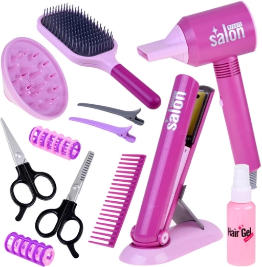 Föön, sirgendaja, harjad, kammid, klambrid, rullid ja käärid – kõik, mida väike juuksur vajab soengute loomiseks kodus ja reisil.