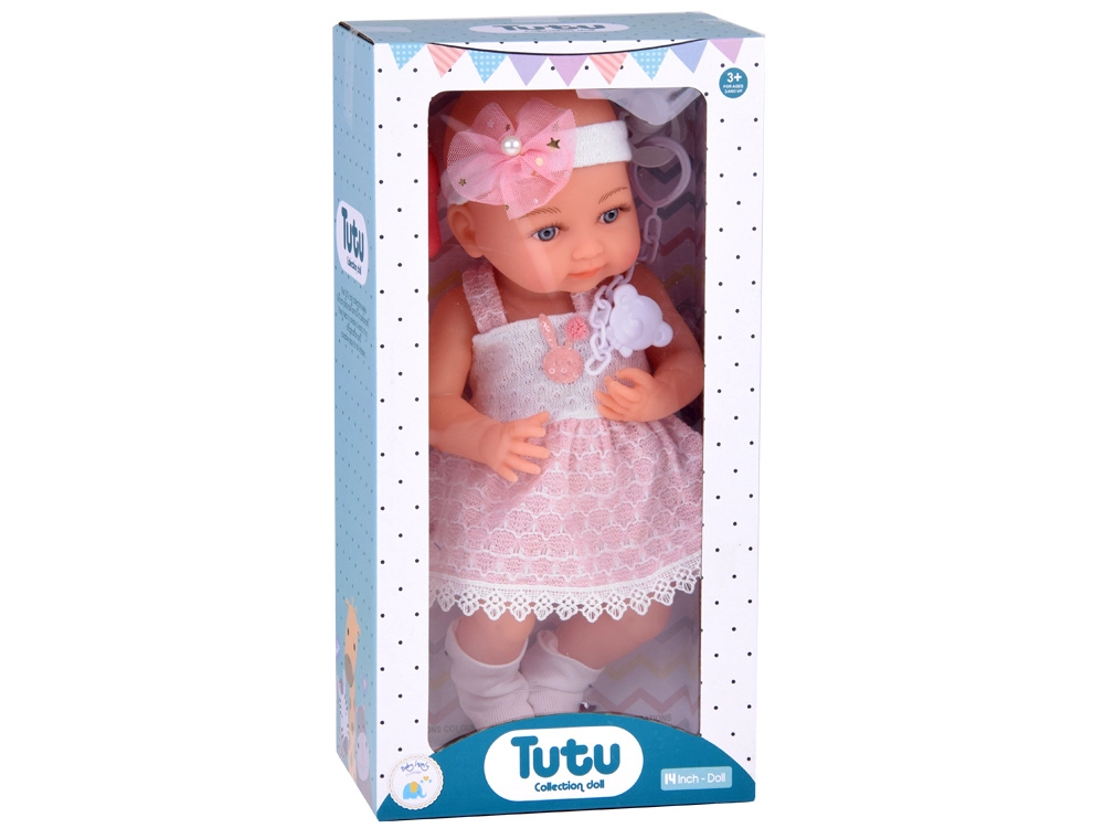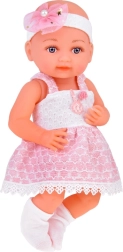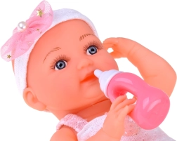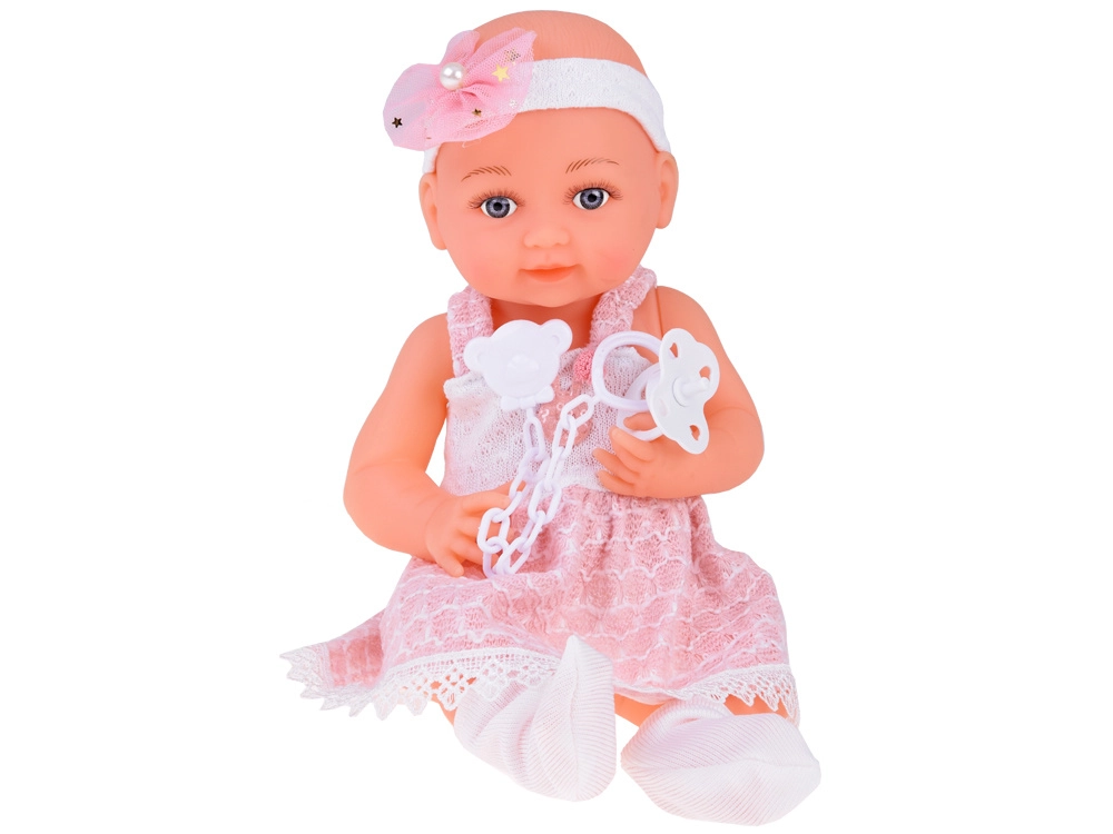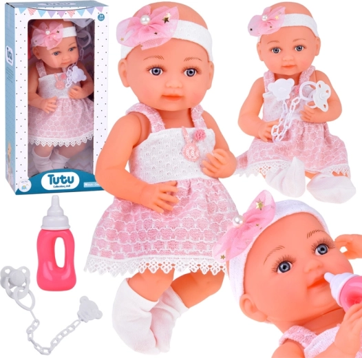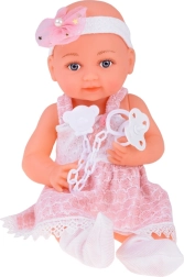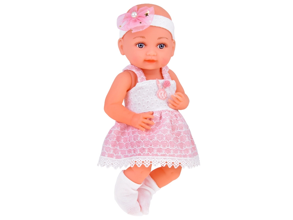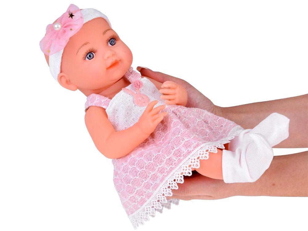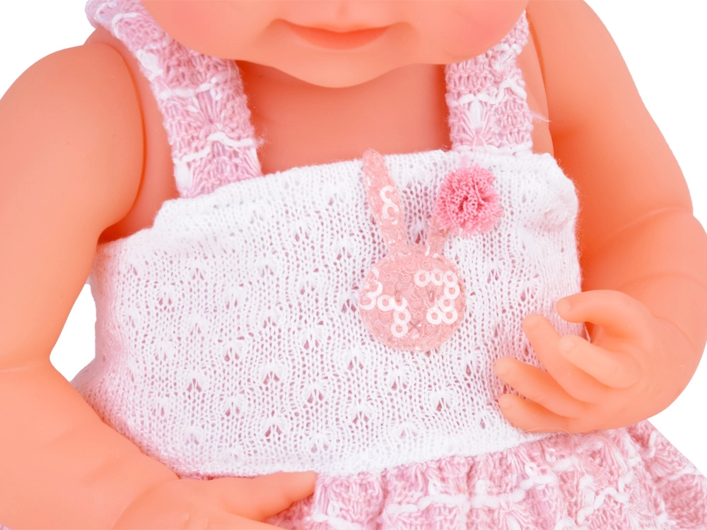 See hoolikalt valmistatud nukk vastupidavast plastist ja tekstiilist võlub detailse näo, õrna ilme ja kauni roosa-valge rõivastusega. Beebit kaunistab peapael lipsu ja pärliga ning jalas on valged sokid. Silmad ei sulgu, kuid tänu väljendusrikastele ripsmetele mõjub nukk väga elavana.