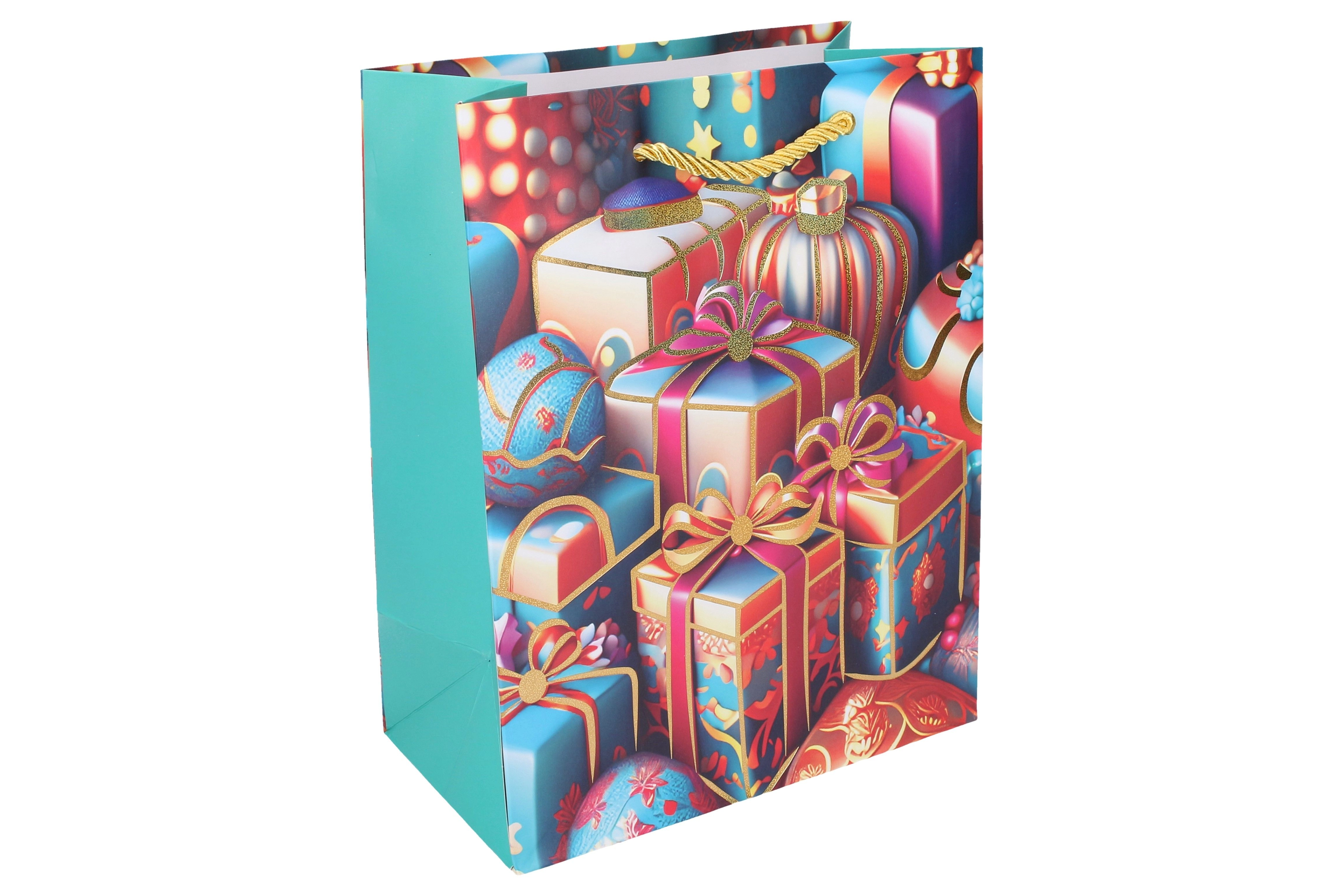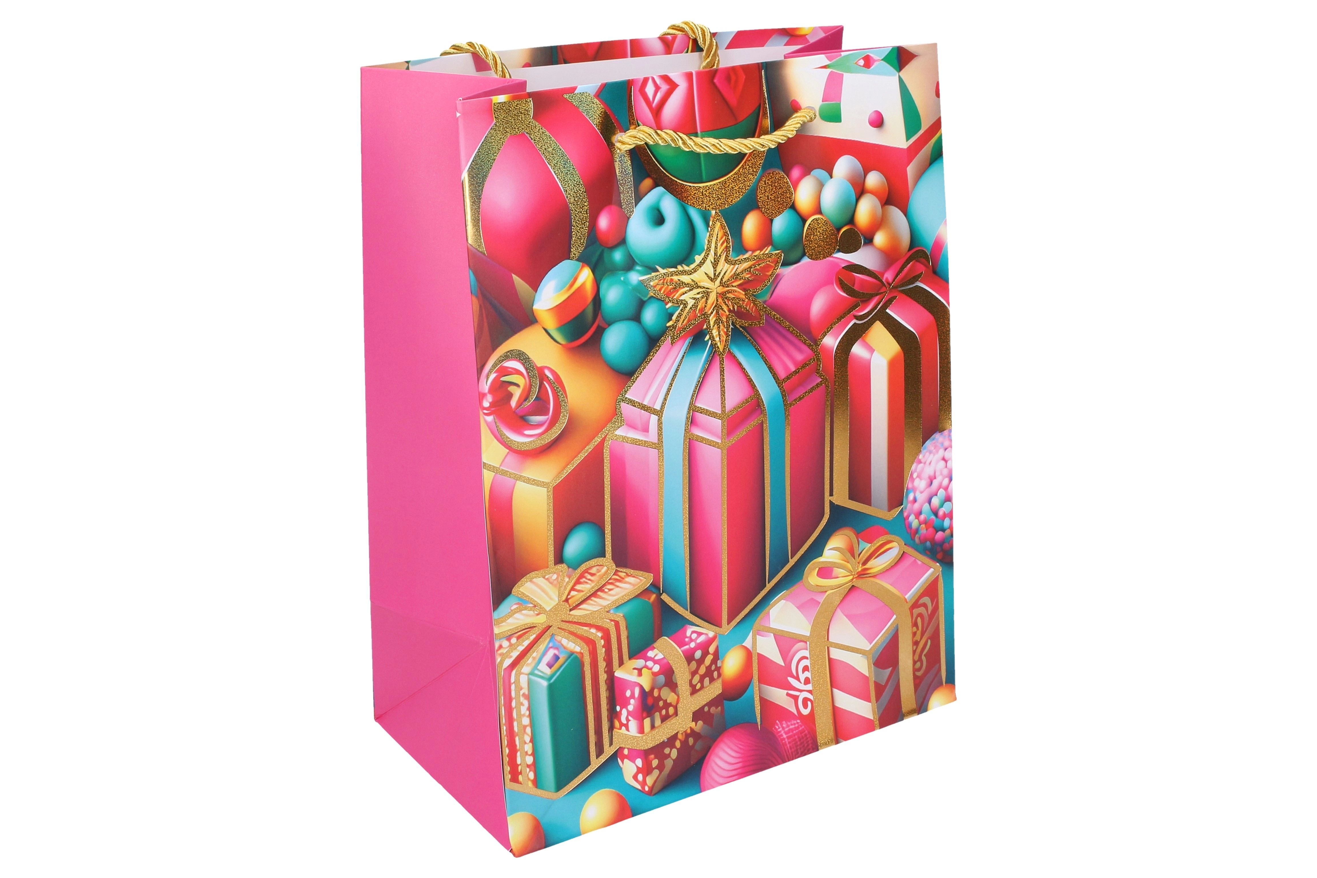 Stiilne jõulukinkekott suuruses S (23 × 18 × 10 cm) kiireks ja elegantsiks kinkide pakkimiseks. Pakub 4 pidulikku varianti, on vastupidav, praktiline ja sobib väikestele kuni keskmise suurusega kingitustele.