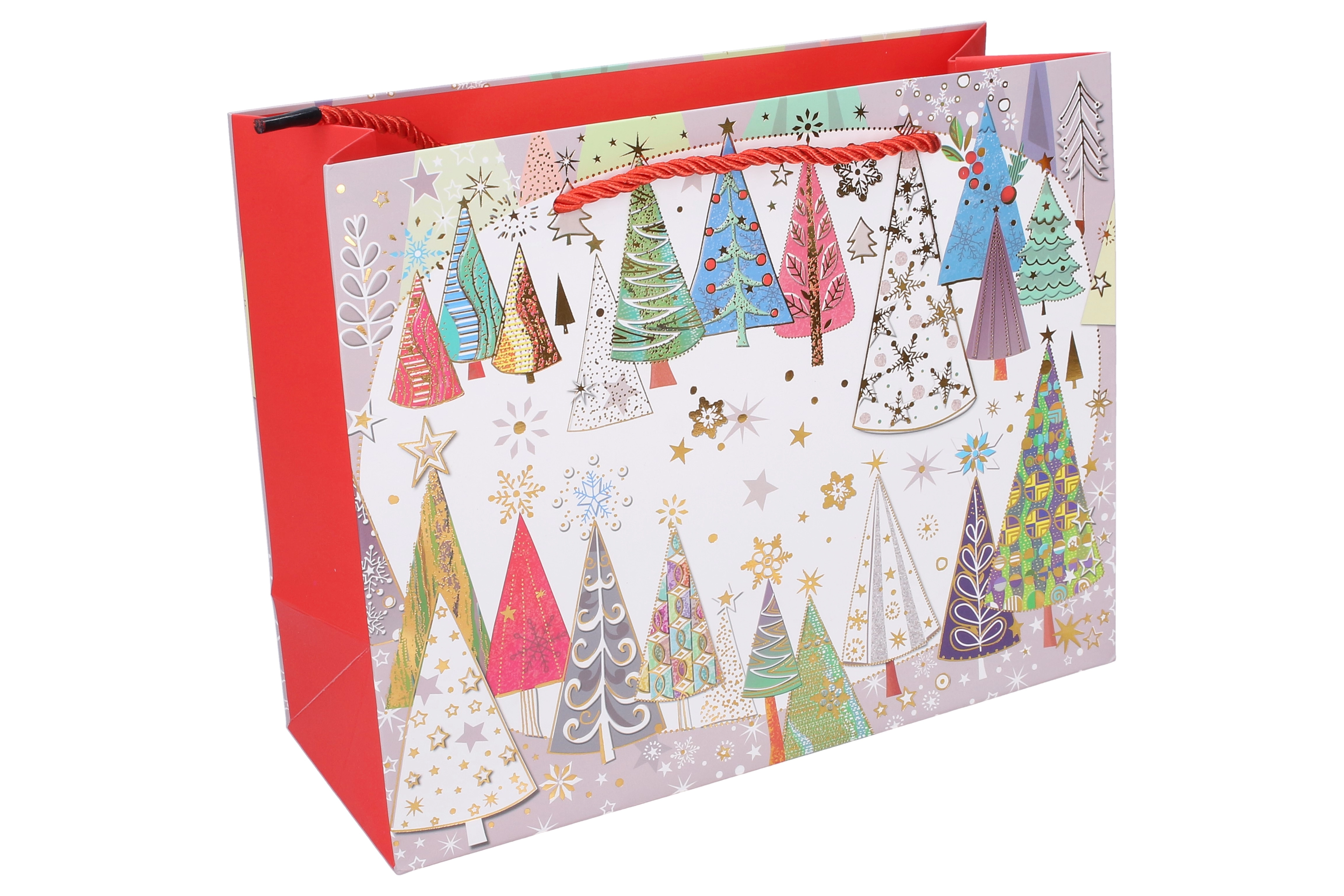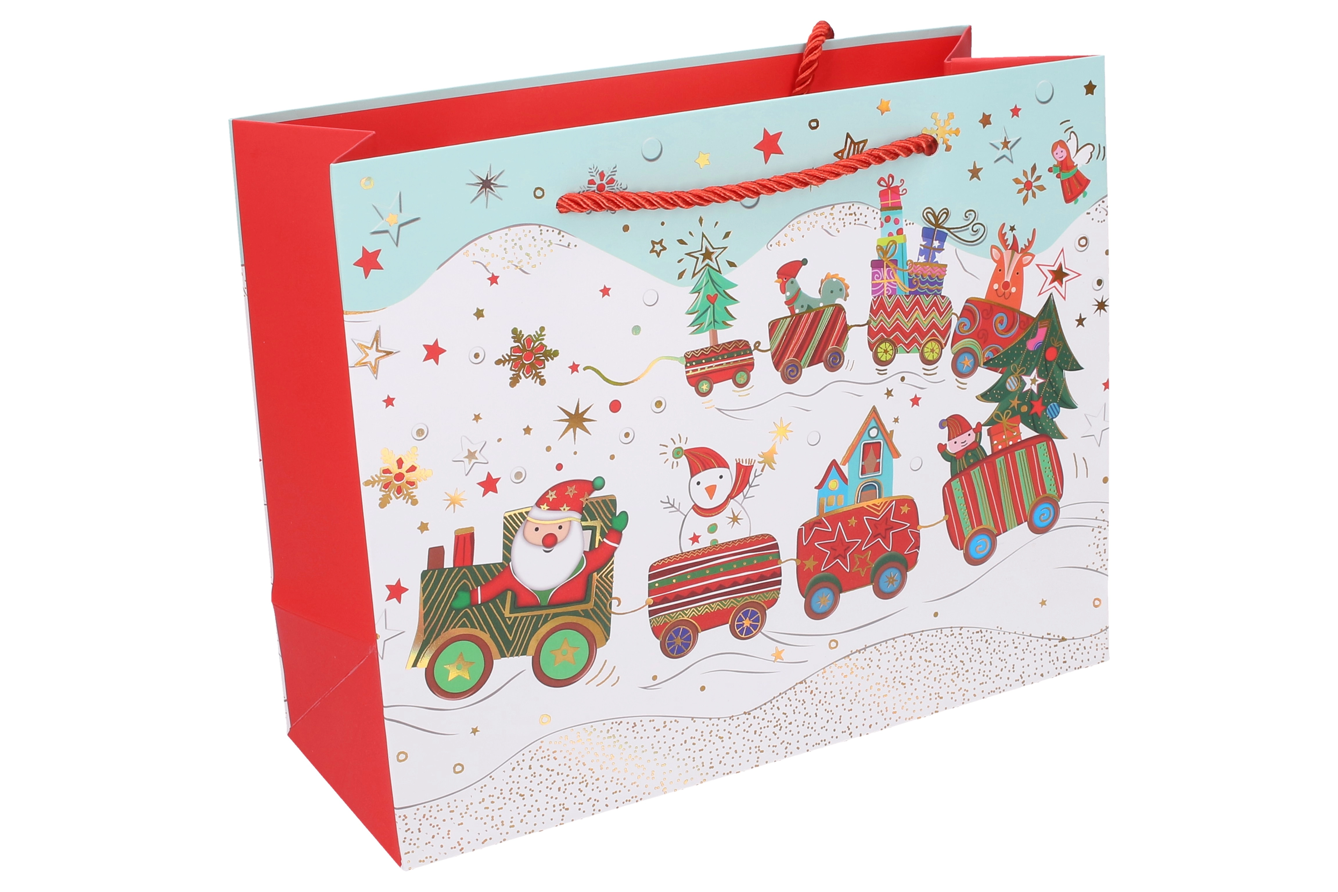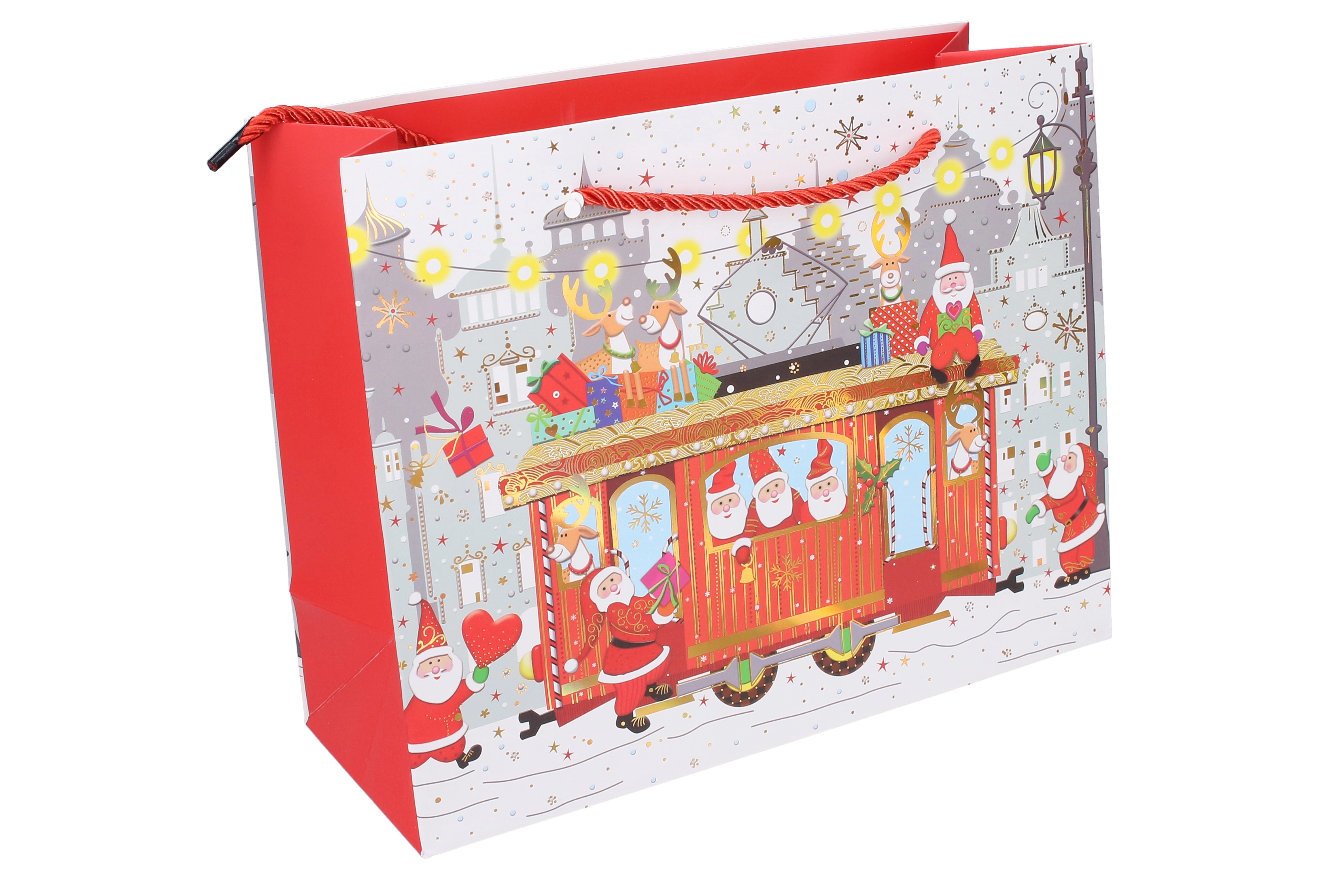 Stiilne jõuluteemaline kingikott suuruses M (32 × 26 × 10 cm) elegantseks kingituste pakkimiseks. Ideaalne raamatutele, kosmeetikale või väiksematele karpidele. Saadaval 4 variandis koos jõulumotiividega ja tugevate sangadega mugavaks kandmiseks.