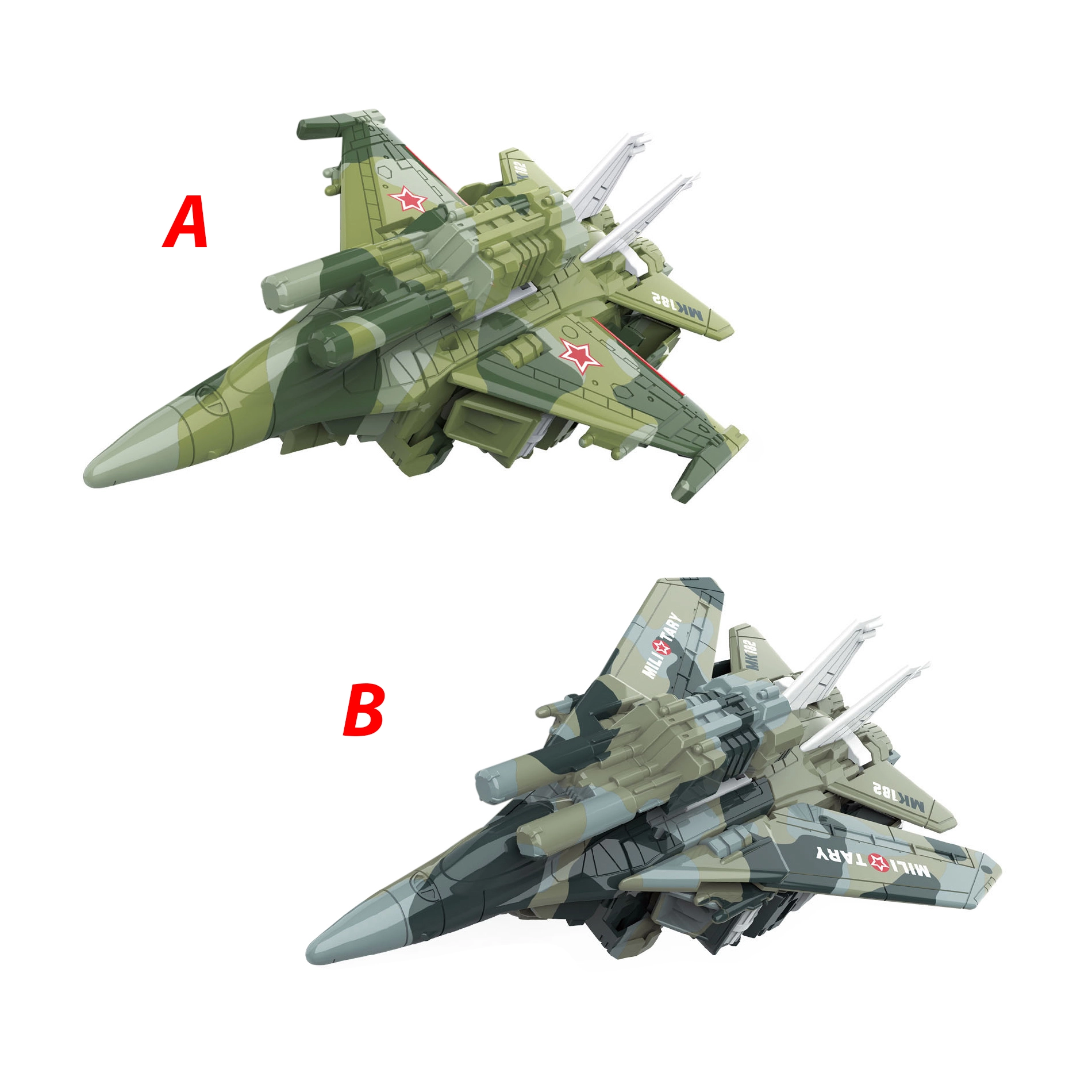 Transformeeritav robot ja hävituslennuk on suurepärane näide mänguasjast, mis ühendab loovuse ja interaktiivse mängu. Ühe liigutusega muutub robot sõjaväe hävitajaks, võimaldades lastel kogeda põnevaid, actionirohkeid lugusid. Mänguasi on umbes 15 cm kõrge, mis on ideaalne mõõt väikelaste kätele.