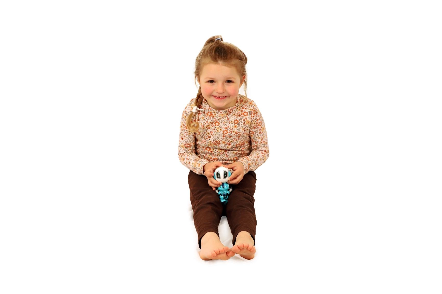 Väike robot on kompaktses 12 cm suuruses, nii et see mahub hõlpsasti laste kätte ja seljakotti. Juhtimine on intuitiivne: sees – räägi – väljas kõik ühe nupuga. Patareid on komplektis, nii et alustada saab kohe pärast lahtipakkimist.