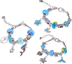 Hõbe‑sinised helmed, ripatsid ja ketid mere-, lille- ja südamekujunditega – lõputud kombineerimisvõimalused.