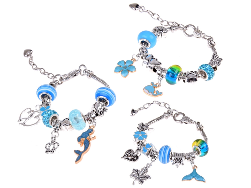 See loovkomplekt pakub rikkalikku valikut komponente lihtsaks lükkimiseks ja oma aksessuaaride kokkupanekuks. Metallist käevõrud, reguleeritavad ketid ja vahatatud nöörid, mida täiendavad dekoratiivsed helmed ja charms‑ripatseid, võimaldavad luua ehteid täpselt sinu fantaasia järgi – meremotiividest kuni südamete ja lilledeni.
