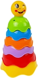 Vikerkaarevärvides virnastatavate tasside mängupüramiid toetab lapse arengut juba esimestest kuudest. Kvaliteetsest, ohutust plastist tassidel on siledad, ümarad servad ning kõige peal on väikseim tass rõõmsa näoga. Mänguasi arendab peenmotoorikat, käe-silma koostööd, värvide ja kujundite äratundmist ning loogilist mõtlemist.