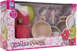 Arendage laste kujutlusvõimet 11-osalise metallist nõude ja tööriistade komplektiga väikestele kokkadele alates 3. eluaastast. Komplektis on potid kaantega, pann, kurn ja köögiriistad ning see köidab tähelepanu erkvärvide, vastupidava metallkonstruktsiooni ja rikkaliku varustusega realistseks kokkamismänguks.