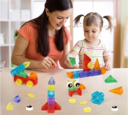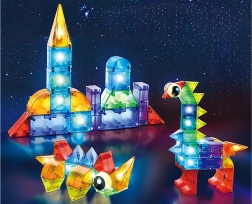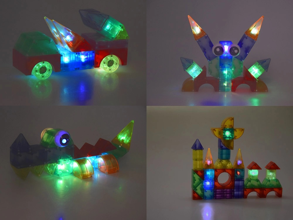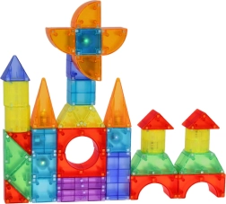 See mitmekesine magnetklotside komplekt võimaldab lastel ehitada autosid, torne, loomi ja fantaasiakonstruktsioone. Vastupidavast ja ohutust plastikust detailid püsivad kindlalt tänu sisseehitatud magnetitele ning valgusmoodulid annavad igale loomingule efektse ilme. Kaasas on juhendid erineva raskusastmega, et lapsed saaksid järk-järgult oma oskusi arendada.