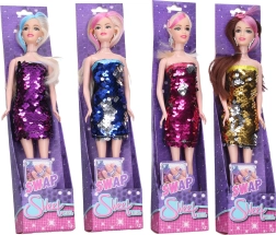 Riieta, kammi ja hurraa – linna lõbutsema! See stiilne nukk värvilise triibuga juustes ja litritega kleidiga, mille värv muutub käega üle silitades, on ideaalne iga väikese preili jaoks.