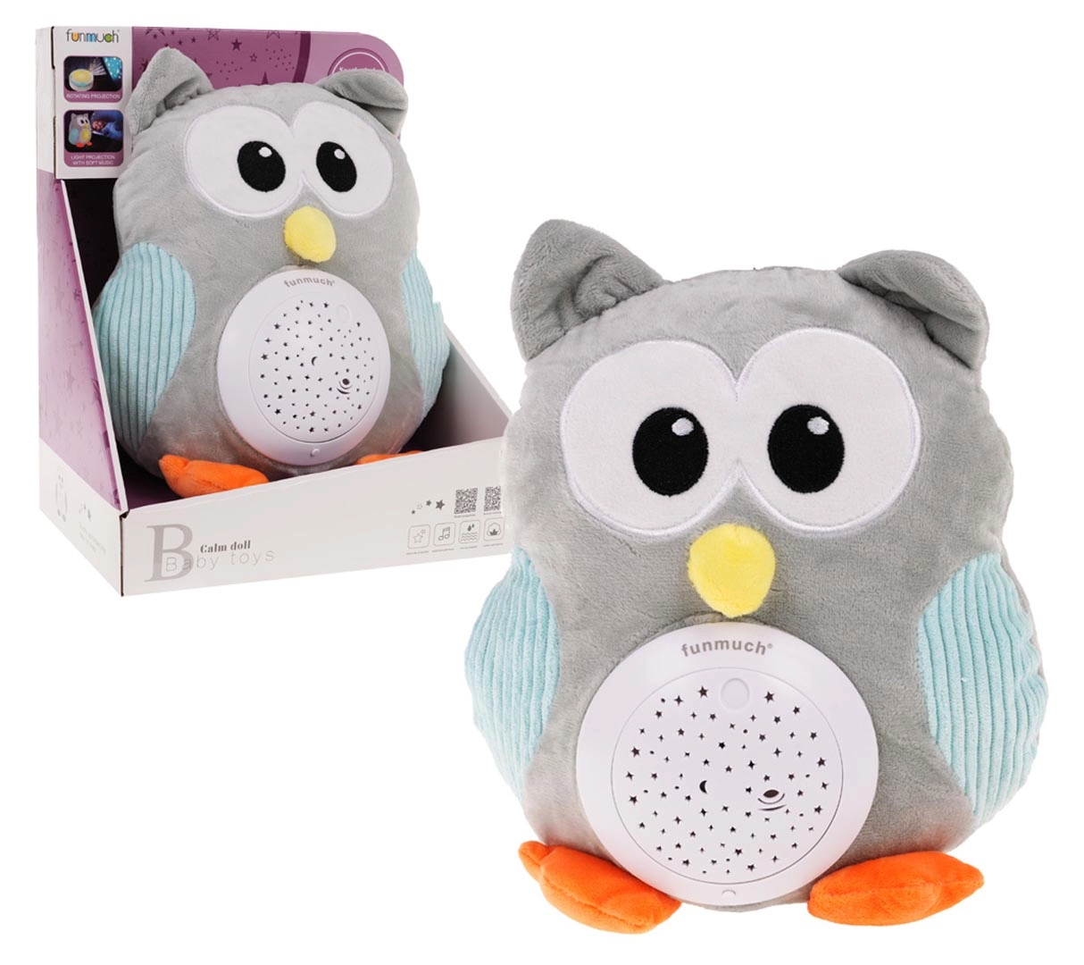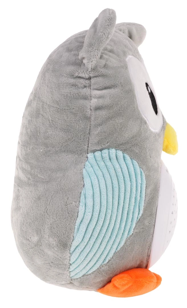 See armas plüüsist öökull ühendab valguse ja heli meeleelamused, et sinu pisike uinuks kergemini ja tunneks end turvaliselt. Kõhus olev eemaldatav moodul projitseerib värvilisi tähekesi ning esitab meeldivaid helisid ja meloodiaid. Pärast mooduli eemaldamist saab öökulli lihtsalt pesumasinas pesta, et see oleks alati puhas ja lõhnav.