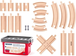 Praktiline komplekt sisaldab 20 puidust rööbast rongiradadele, mis on paigutatud vastupidavasse plastkarpi lihtsaks hoiustamiseks. Ideaalne laiendus laste rongikomplektidele, sobib alates 3. eluaastast ja on CE-nõuetele vastav.