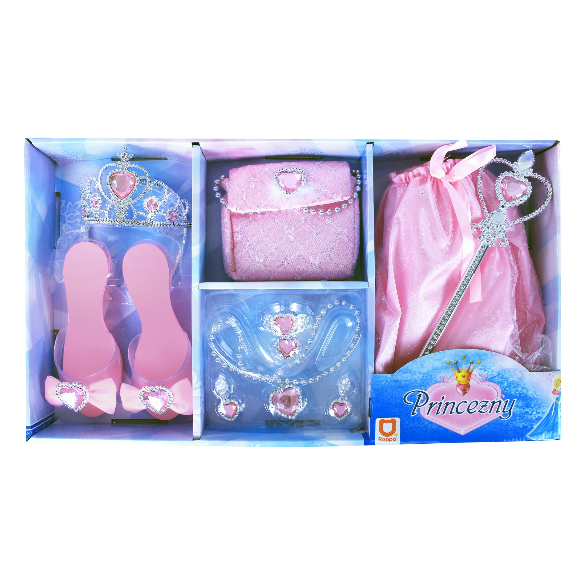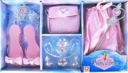 Eksklusiivne roosa komplekt väikestele printsessidele, mis viimistleb iga kostüümi täiuslikuks. Sisaldab seelikut, kingakesi, krooni, valitsuskeppi, kõrvarõngaid, sõrmust, kaelakeed ja käekotti – kõik kaunilt kooskõlas ning kaunistatud roosade kivikestega maksimaalse efekti jaoks. Ideaalne karnevaliks, pidudeks ja koduseks mänguks. Rikkasta oma kostüümi kaunite aksessuaaridega ühtses stiilis ja naudi säravat printsessilikku välimust.