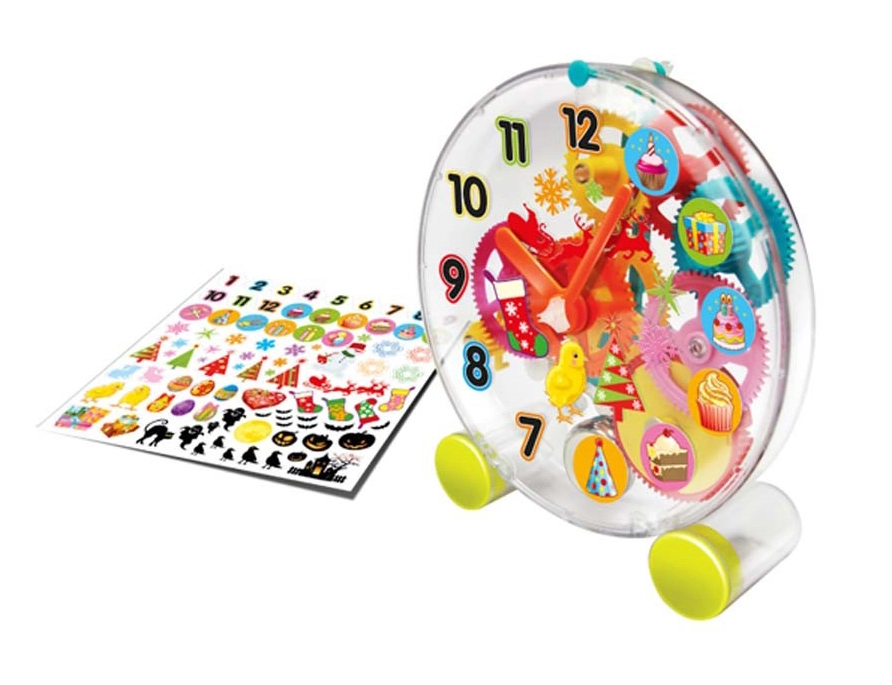 Pärast kokkupanekut töötab kell mehaanilise mehhanismi alusel, olles ühtaegu hariv ja lõbus. Pakendis on dekoratiivsed kleebised, millega saad kujunduse oma maitse järgi viimistleda.