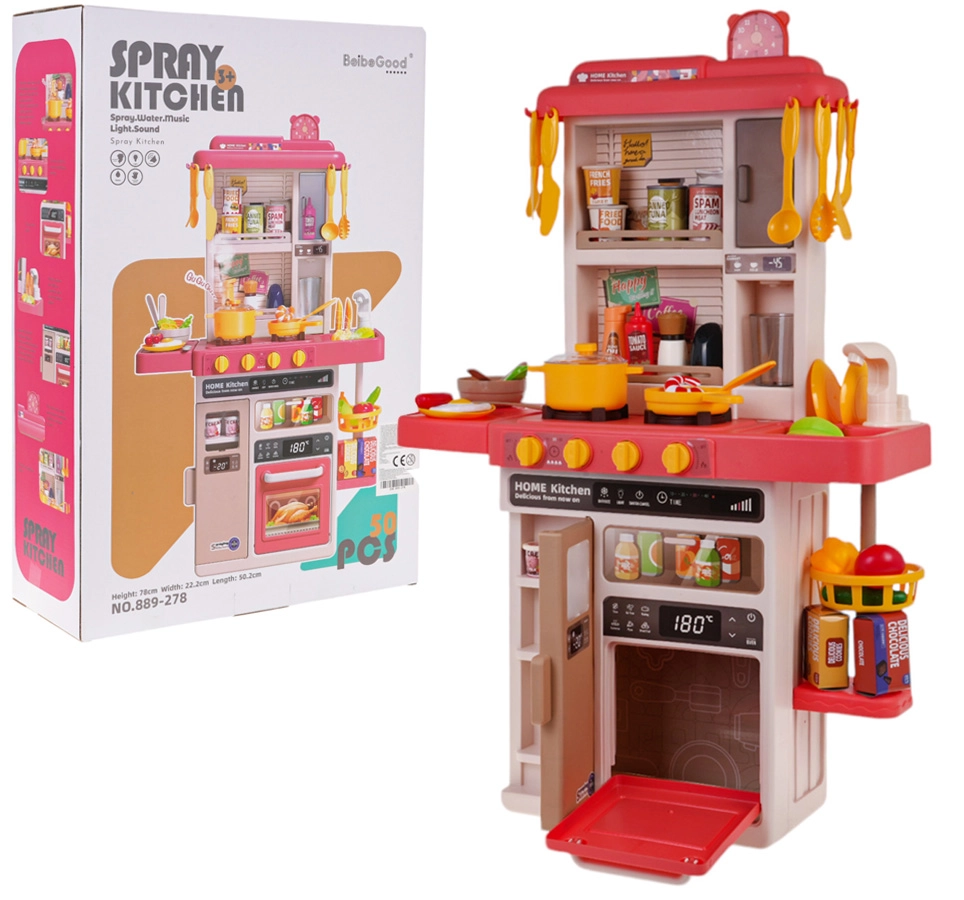 Suur laste köök väikestele kokkadele alates 3. eluaastast pakub valgus- ja heliefekte, päriselt voolavat vett kraanist ning ohutut auru pliidiraualt. Komplektis on 50 tarvikut, vastupidavast plastist elavates värvides detailid ja funktsionaalsed elemendid nagu pööratavad nupud, valgustusega pliidiplaadid ning avatav ahi ja “külmik”, mis tagavad tundideks loova mängu.