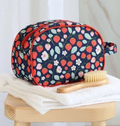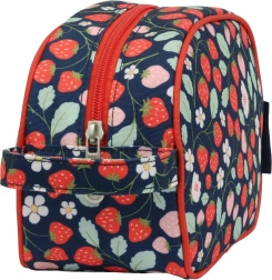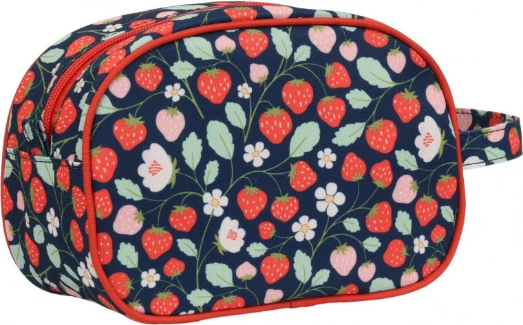 See A Little Lovely Company laste tualett-tarvete kott paistab silma mängulise maasikadisaini ja usaldusväärse tõmblukuga tumesinisel taustal. Tänu kompaktsetele mõõtudele mahub see kergesti seljakotti või kohvrisse ning hoiab kõik hügieenitarbed kenasti koos.
