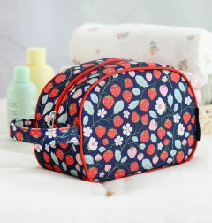 Stiilne tualett-tarvete kott maasika motiiviga on ideaalne reisidele, laagritesse ja puhkusele. Sellel on ruumikas sahtel šampooni, seebi, hambaharja ja muude pisiasjade jaoks, praktiline sang lihtsaks kandmiseks ning vastupidav teostus igapäevaseks kasutuseks.
