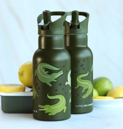 Stiilne lastetoode – 350 ml roostevabast terasest joogipudel krokodillimustriga ühendab kahekordse seinaga isolatsiooni suurepärase temperatuurihoidvuse jaoks, praktilise kõrsuga tilaga korki külmade jookide jaoks ning vastupidava teostuse, mis on ideaalne lasteaeda, kooli ja matkadele.