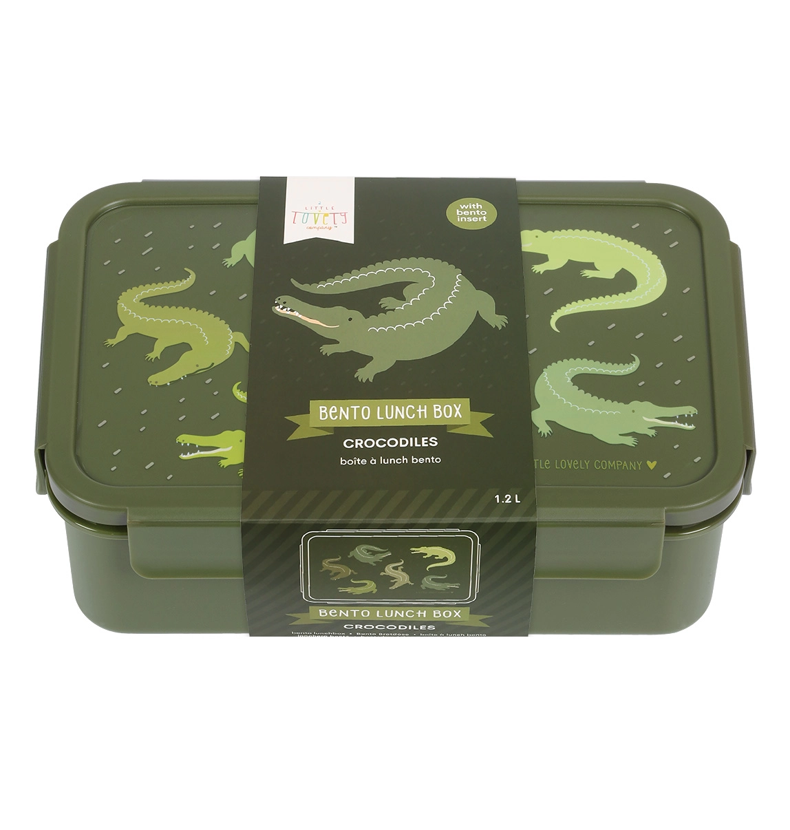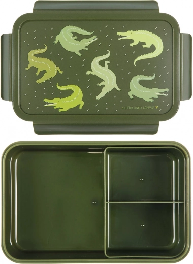 Praktiline krokodillimustriga einekarp on ideaalne nii kooli kui ka väljasõitudeks. Sellel on õhukindel klõpskinnitusega kaas ja eemaldatav tops kahe vaheseinaga, et suupisted püsiksid kogu päeva värsked ja korrastatult eraldatud.