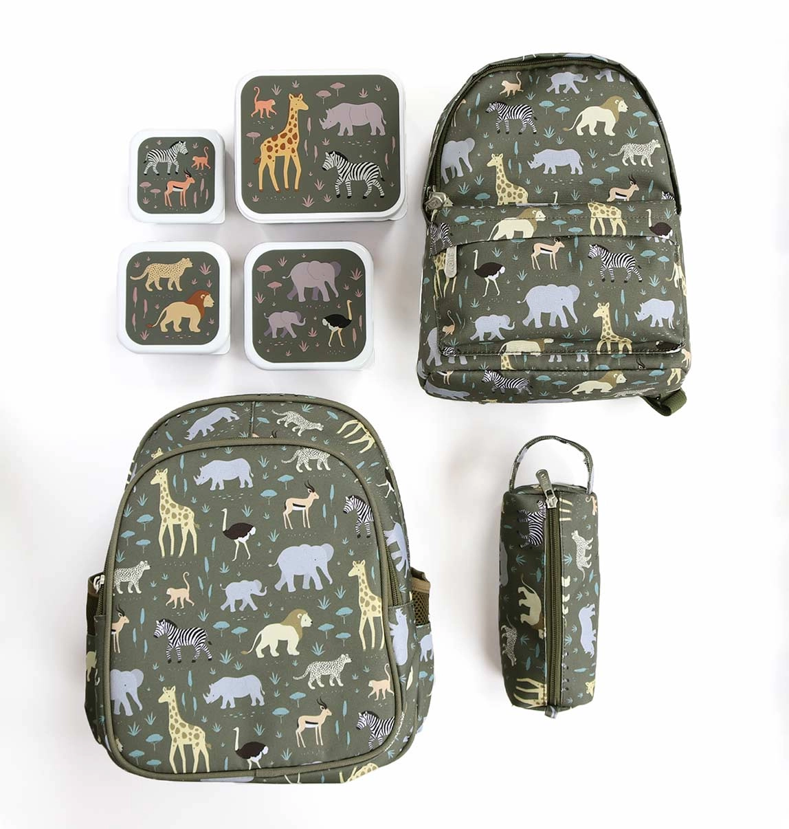 Praktiline nelja einekarbi komplekt neljas suuruses, millel on savana loomade motiiv. Karpe on lihtne avada, neid saab kokku laduda ja üksteise sisse panna ruumi säästmiseks ning need sobivad ideaalselt lõuna- ja vahepaladeks lasteaeda, kooli või väljasõitudele.