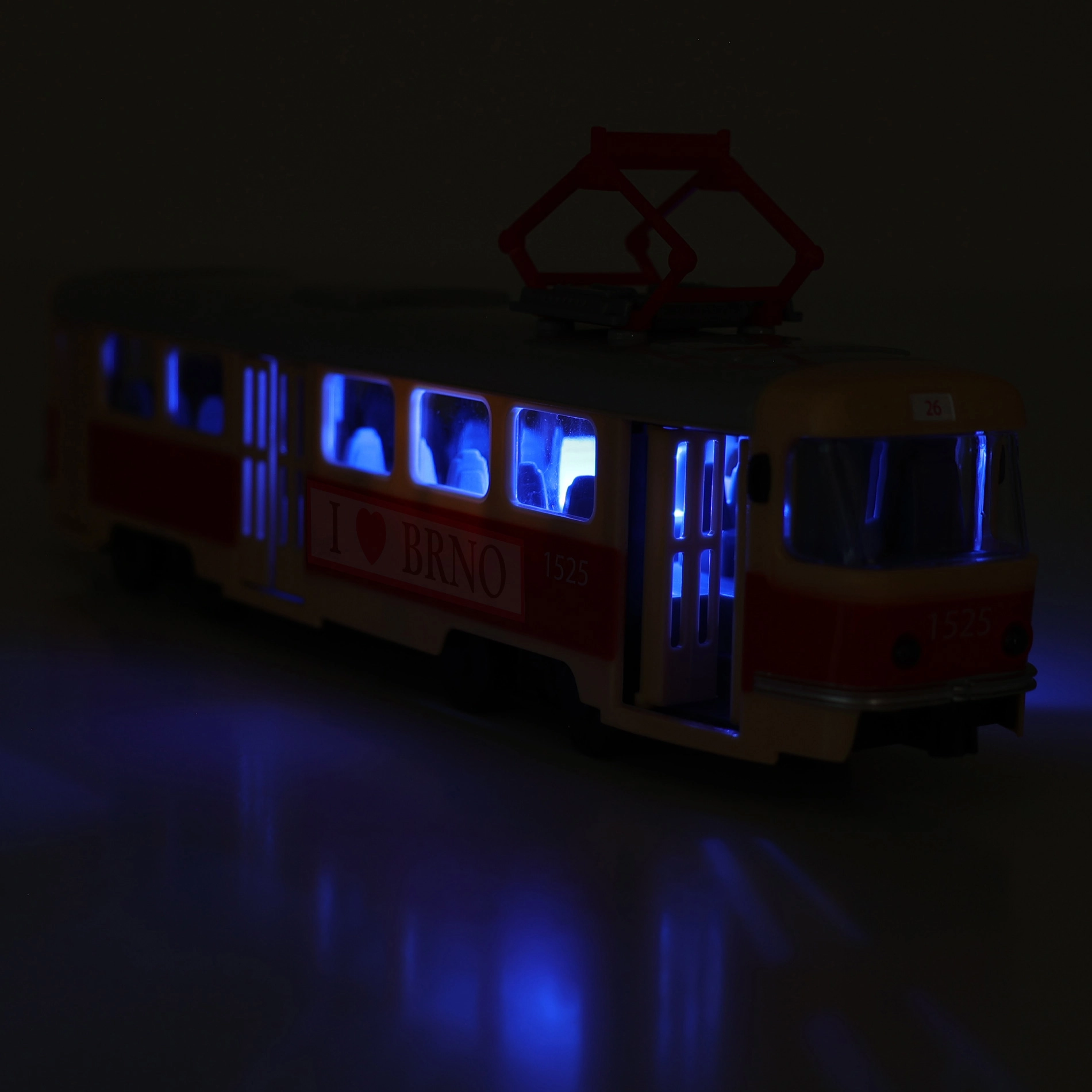 Avastage lõbus ja detailselt viimistletud T3 tramm BRNO motiiviga, mis rõõmustab nii väikseid kui suuri linnatranspordi fänne. Iga ukse avamisel kõlab autentne tšehhikeelne peatuste teavitamine, sulgemisel teatab tramm järgmise peatuse. Eesuste avamine aktiveerib lisaks sinise sisemise valgustuse, mis võimendab mängu realistlikkust.