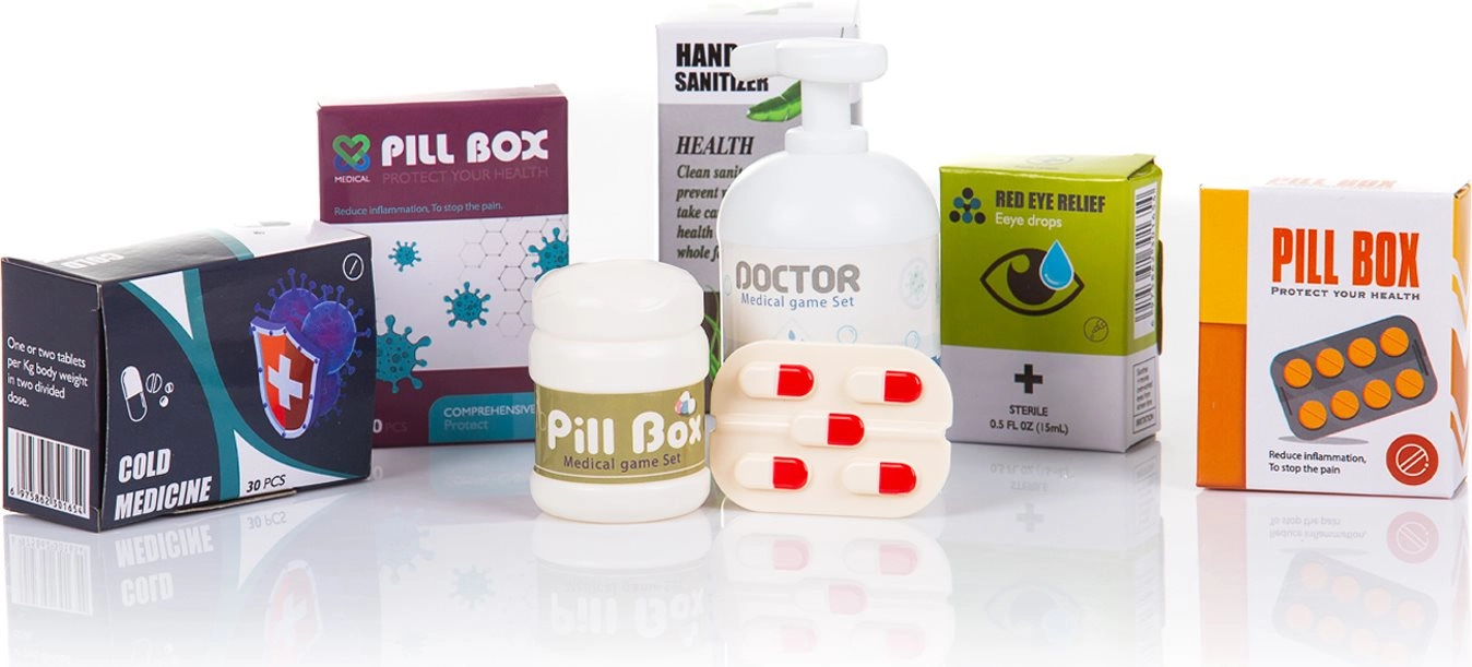 Tööriistad nagu süstal, stetoskoop ja termomeeter toetavad lapsi õppivas mängus.