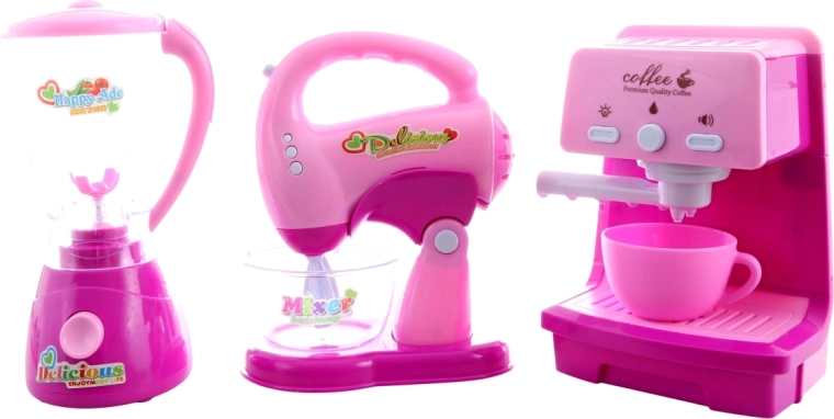 See värvikirev komplekt jäljendab päris köögiabilisi ja muudab iga lastetoa väikeseks kohvikuks. Lastele meeldivad realistlikud nupud, tuled ja helid, vanemad hindavad samal ajal turvalist teostust ja vastupidavat plastikut. Kohvimasinat saab täita veega ja vett käsitsi pumbata kaasasolevasse tassi, mis toetab meelte arengut ja rollimänge.