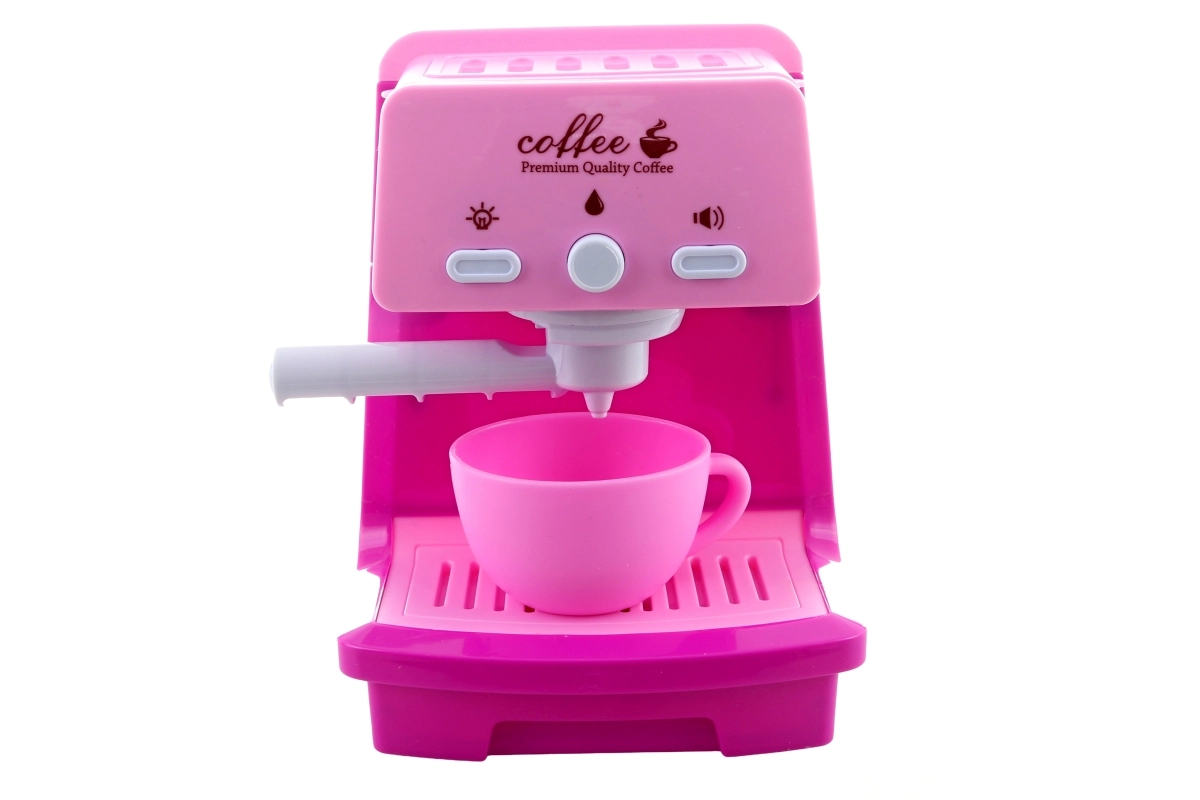Laste kohvimasin valgus- ja heliefektide, portafiltri ja tassiga. Anumasse saab valada vett ja seda käsitsi pumbata – justkui päris espresso valmistamisel.