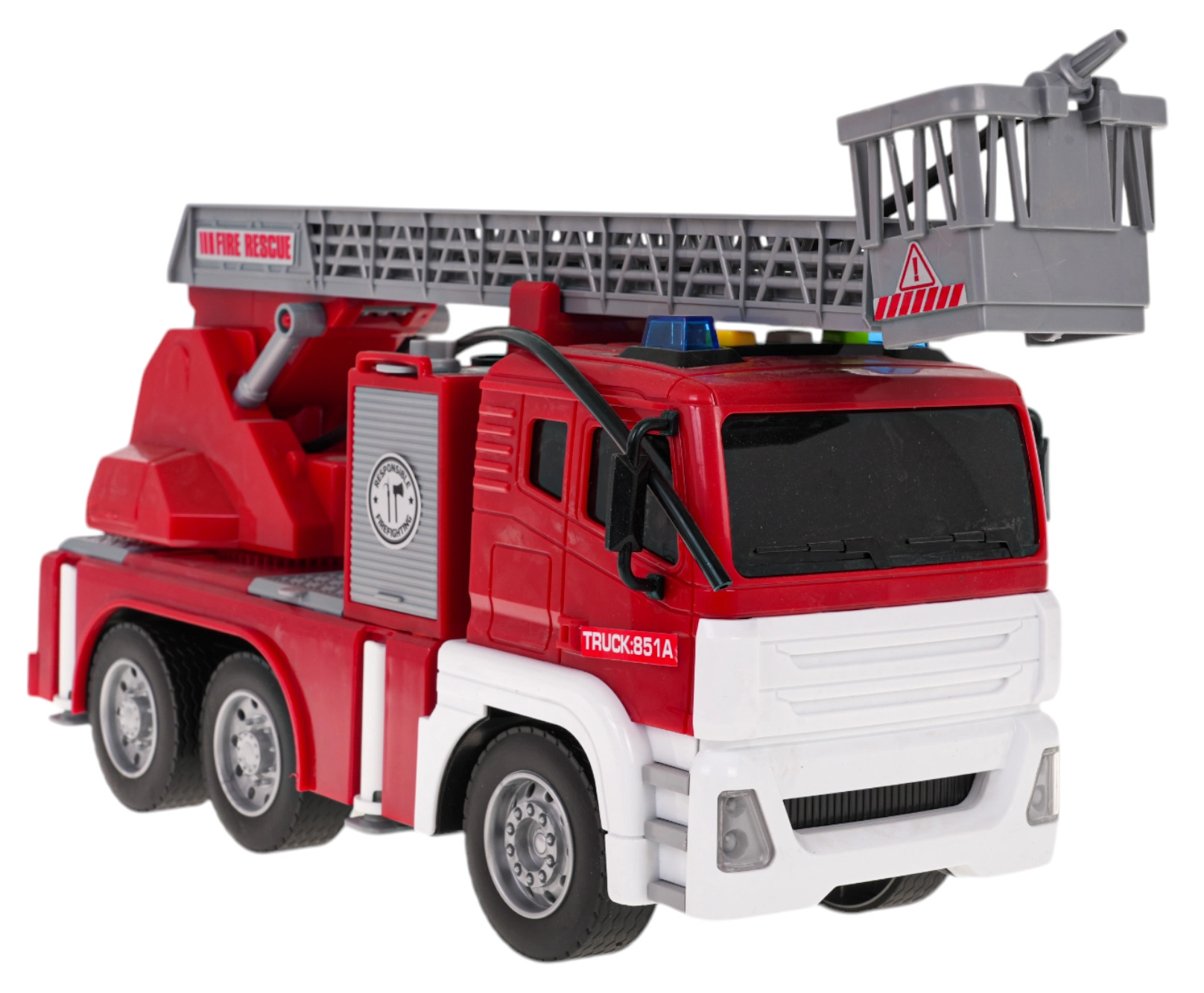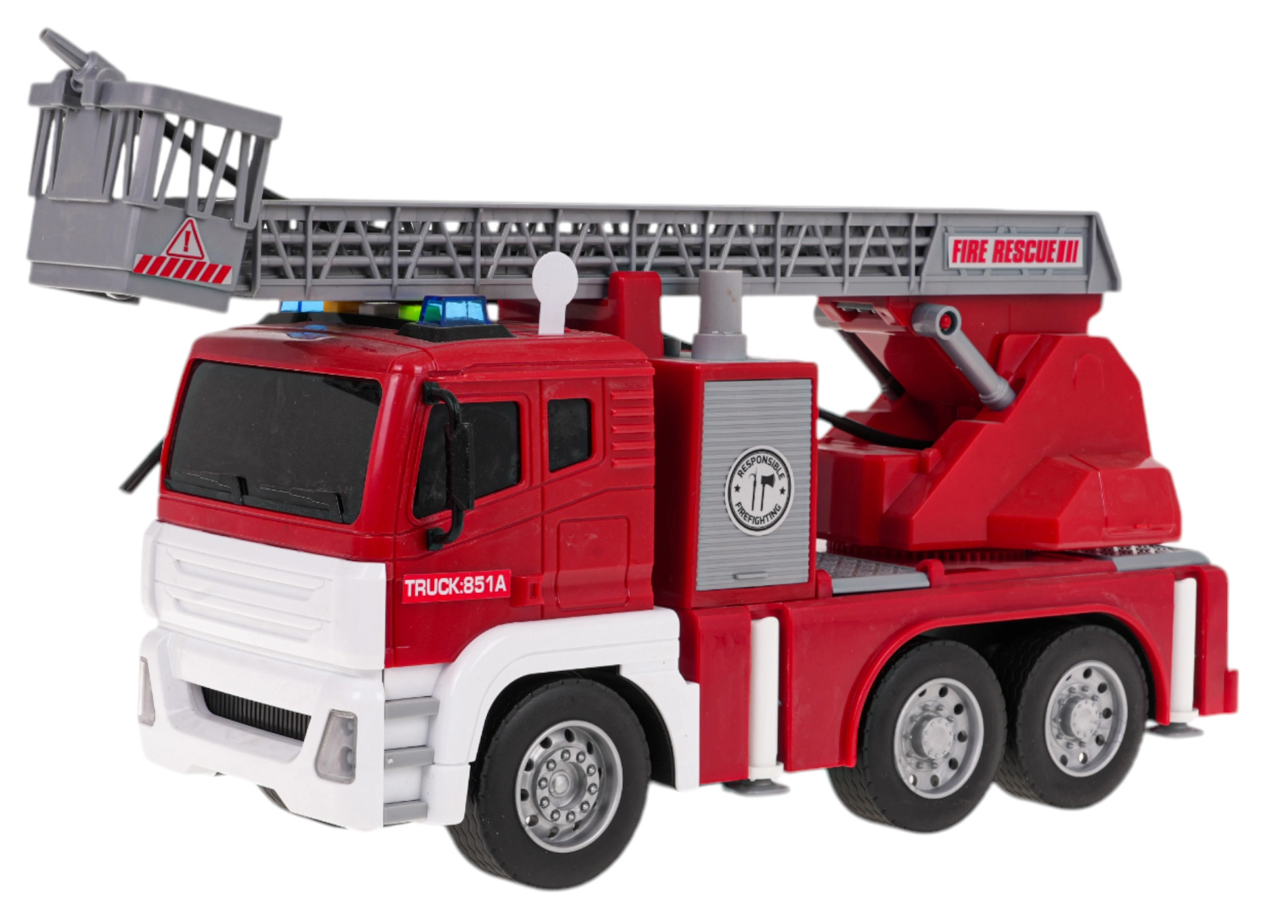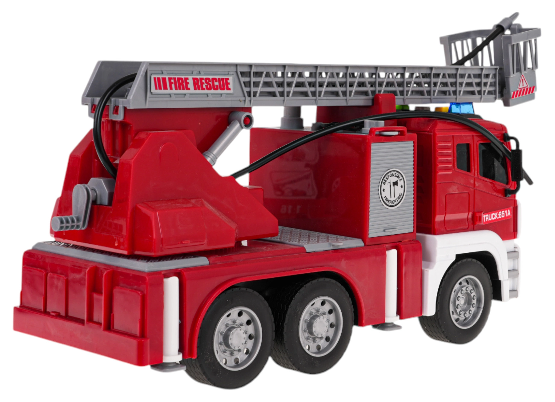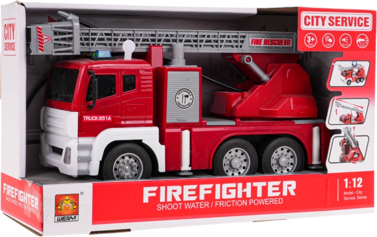 See interaktiivne tuletõrjeauto on ideaalne mängukaaslane lastele, kes armastavad põnevat tegutsemist. Sõiduk on valmistatud kõrgekvaliteedilistest materjalidest ja köidab pilku erksate värvidega. Tänu liikuvale reguleeritavale redelile, kummirehvidele ja vee pihustamise funktsioonile on mäng eriti realistlik ja lõbus. Auto liigub eesmistele ratastele mõjuva hõõrdejõumehhanismiga ning on varustatud valgusefektide ja helisignaalidega, mis simuleerivad päris väljakutset.