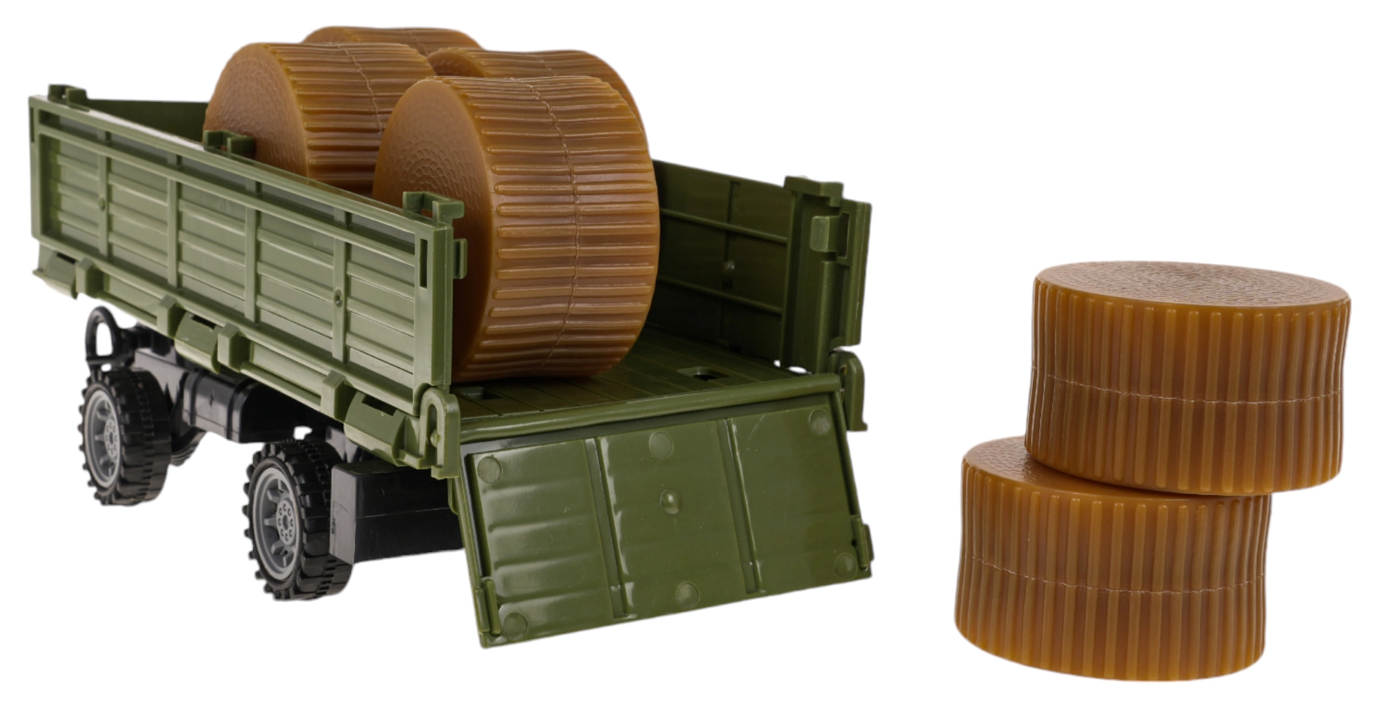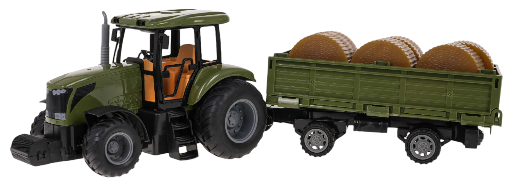 Komplekt sisaldab traktorit, eemaldatavat haagist ja kaugjuhtimispulti, pakkudes lõputult võimalusi loovaks mänguks.