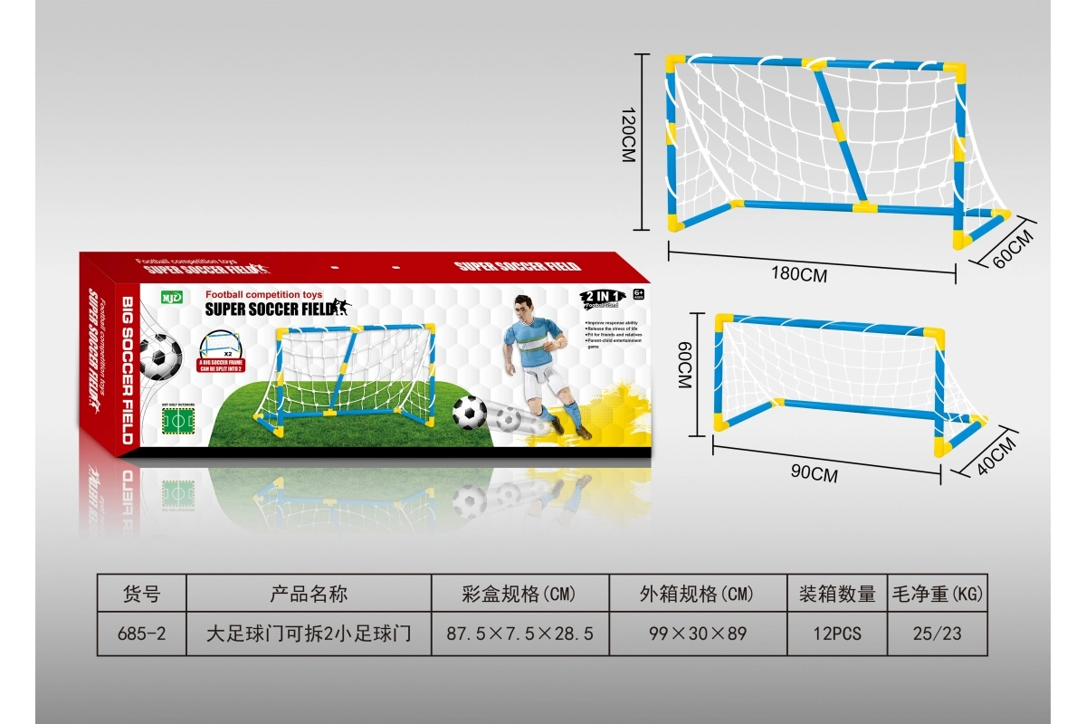 Suurepärane jalgpallivärav, mida saab kasutada kas ühe suure väravana või muuta kaheks väiksemaks väravaks. See paindlik disain pakub rohkem võimalusi mängimiseks vastavalt teie soovidele ja vajadustele.