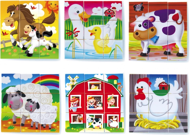 Avasta talu võlu kergete plastkuubikutega, mida on lihtne haarata ka väikeste laste käekestega. Iga kuubiku külg moodustab erineva pildi, nii et lapsed saavad kokku panna 6 eri motiivi ning õppida kujundeid, värve ja seoseid.