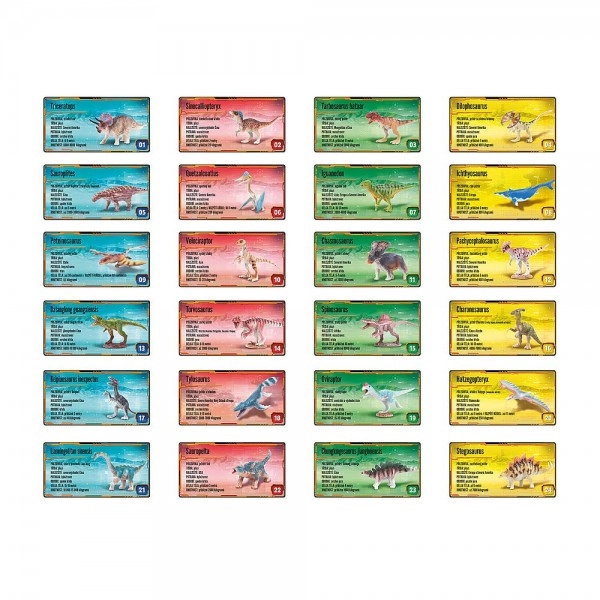 Koosta terve kollektsioon 24 erinevast dinosaurusest ja ava lapse fantaasiale uksed seiklustele mezozoikumi ajastust. Mänguasjad sobivad lastele alates 3. eluaastast ning kompaktsete mõõtmete tõttu on need mugavad ka kaasaskandmiseks.