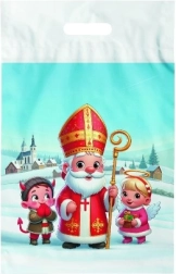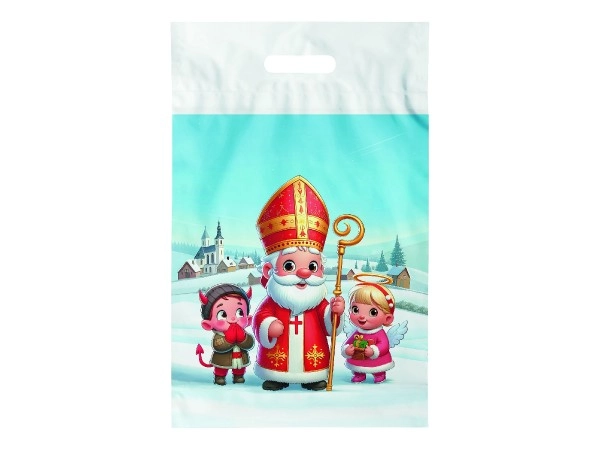 Kaunistatud kilekott Nikolausi, ingli ja kuradi trükiga on ideaalne nikolipäeva üllatuste pakkimiseks. Suurus 29×46 cm pakub piisavalt ruumi maiustele, mänguasjadele ja suurematele kingitustele ning rõõmustab erksa, rõõmsa motiiviga.