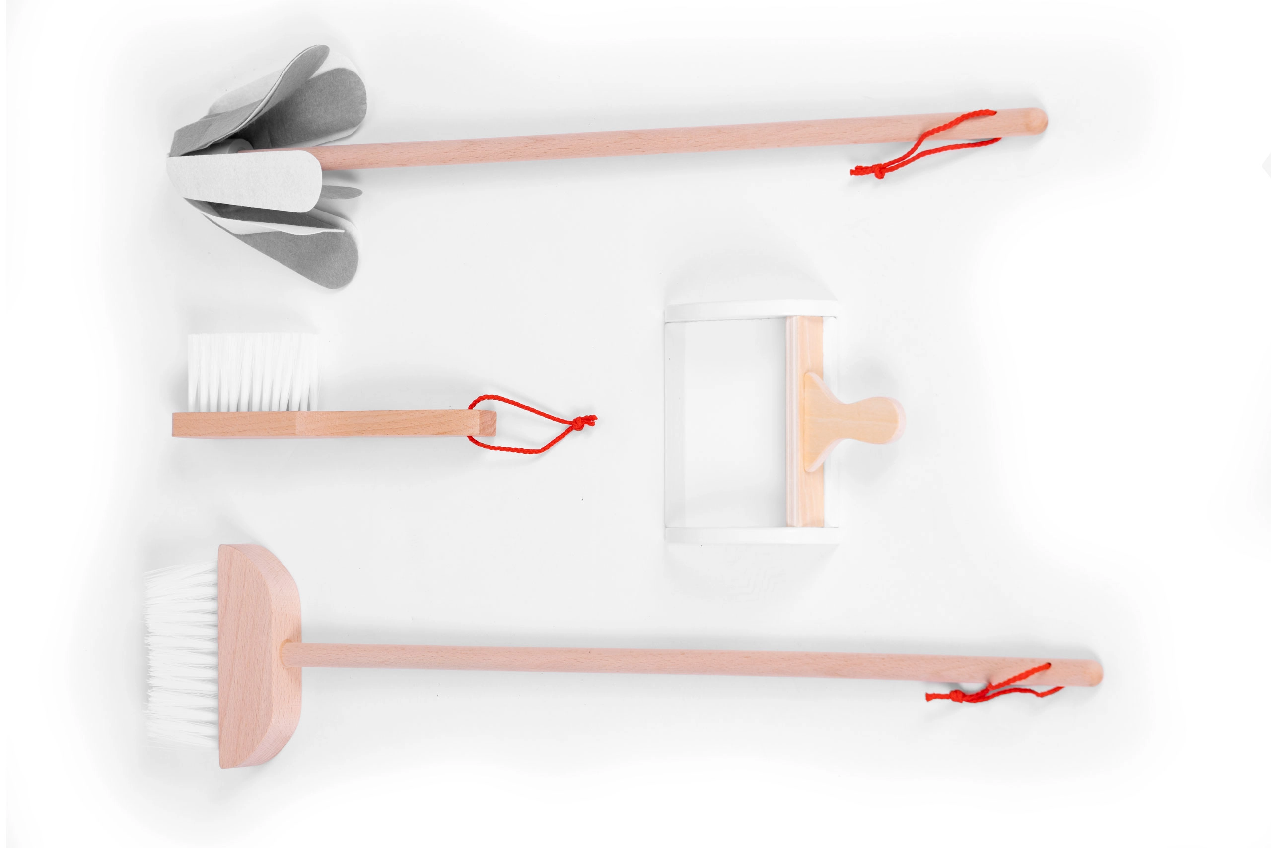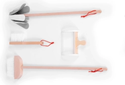 Harjavars, käehari koos kühvliga, mopp ja tekstiilkott – kõik kvaliteetsetest materjalidest, ilma teravate servadeta, turvaliseks mänguks alates 3. eluaastast.