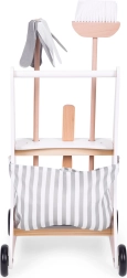 Toetage laste fantaasiat ja iseseisvust puidust koristuskomplektiga, mis rõõmustab võimalusega matkida täiskasvanuid. Ratastel käru lihtsustab liikumist toas ja hoiab kogu varustuse korralikult oma kohal. Kvaliteetne puidu ja tekstiili teostus muudab komplekti vastupidavaks, ohutuks ja meeldivaks katsuda.
