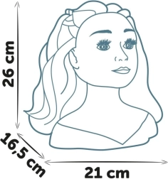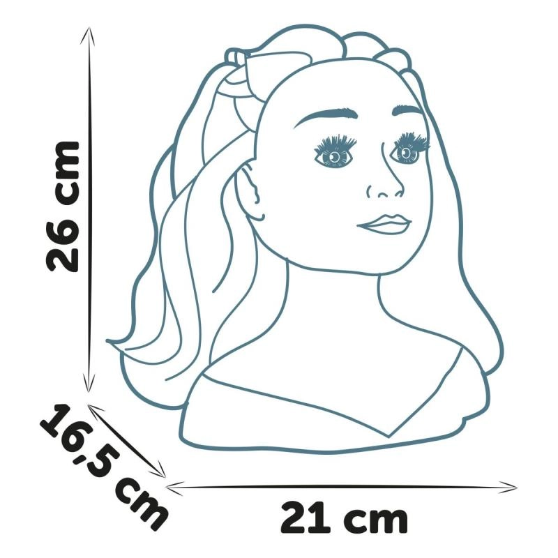 Avasta soengute loomise loov maailm My Beauty soengupeakujuga. Tänu realistlikele juustele saad hõlpsasti luua trendikaid soenguid, samal ajal kui maagiline huulte funktsioon toob make-up’i esile, kui puudutad huuli külma vette kastetud pintsliotsaga. Komplektis on 19 aksessuaari, mida saad peita salajasse panipaika aluses, ning iminappide abil püsib pea kindlalt paigal. Kõrgus 26 cm.