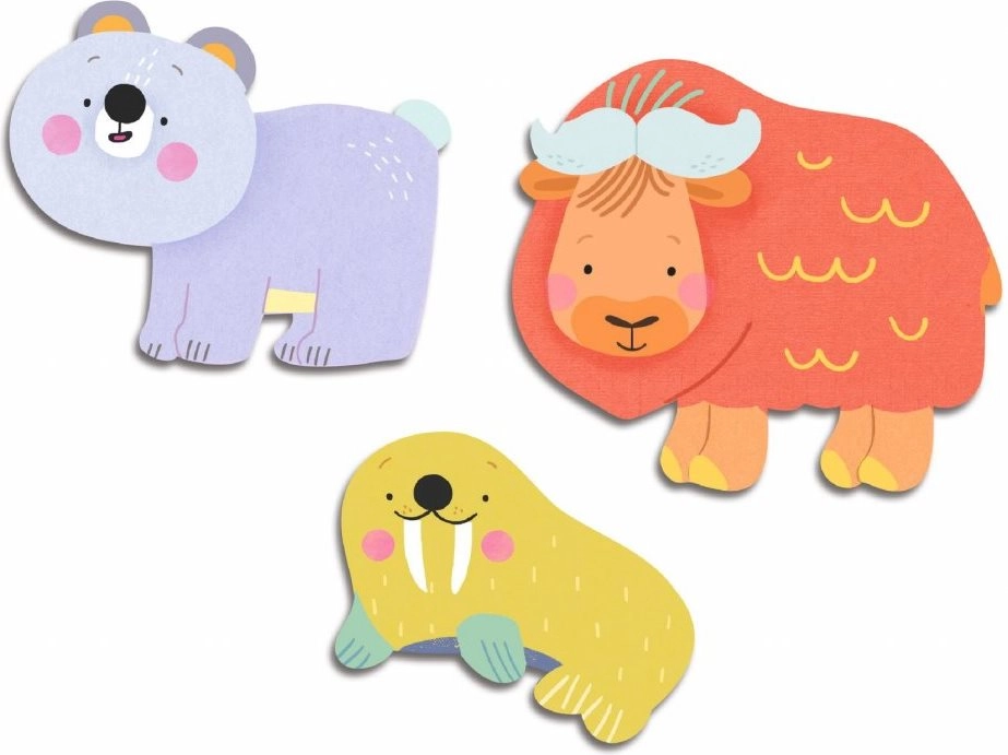 Praktiline loomakujuline pakend ja läbipaistev hoiukarp hoiavad kõik koos nii kodus kui ka teel. Polaarsed motiivid köidavad tähelepanu ning aitavad ära tunda loomi ja värve.