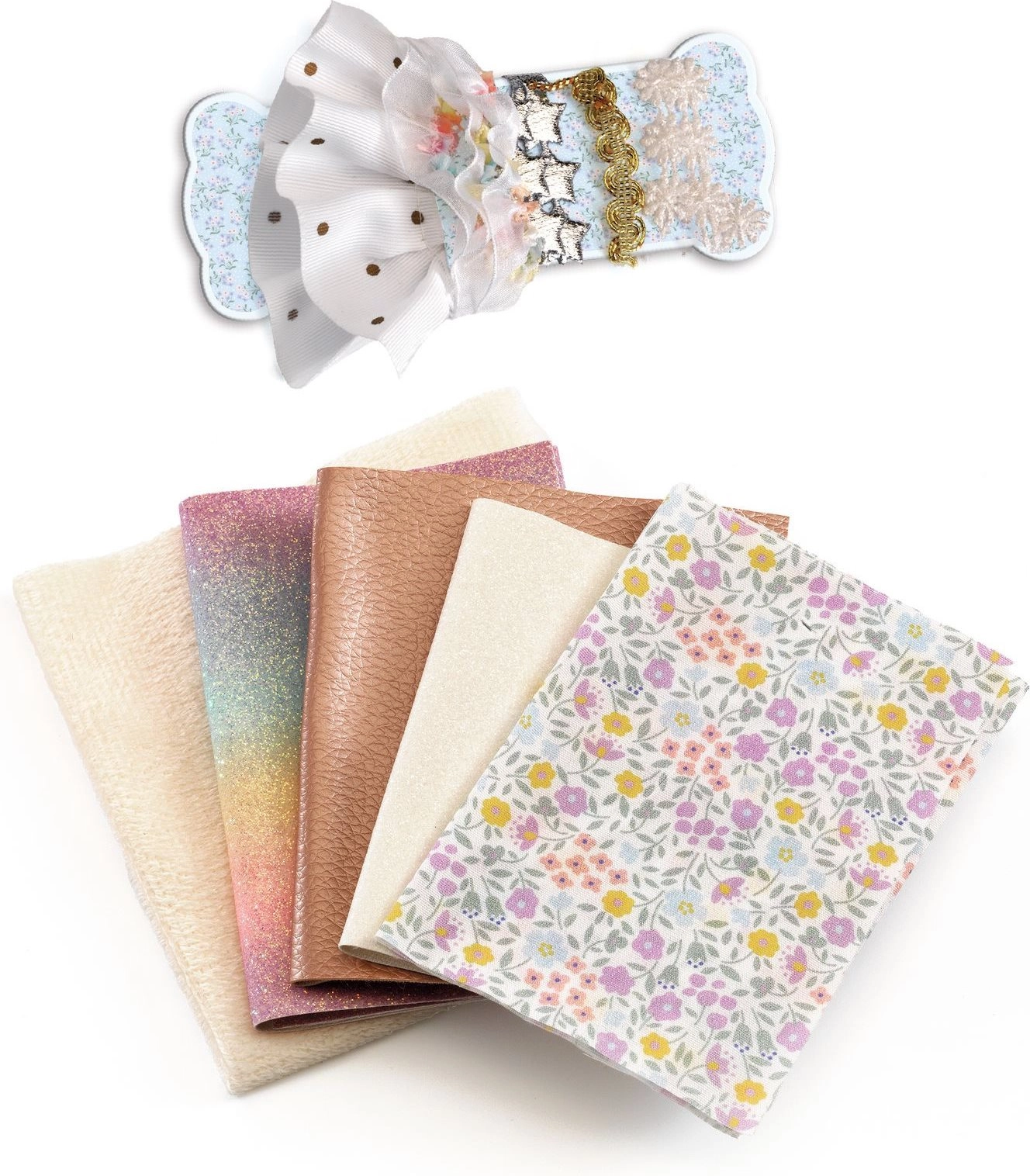 - 5 erinevat kangast ja paela
