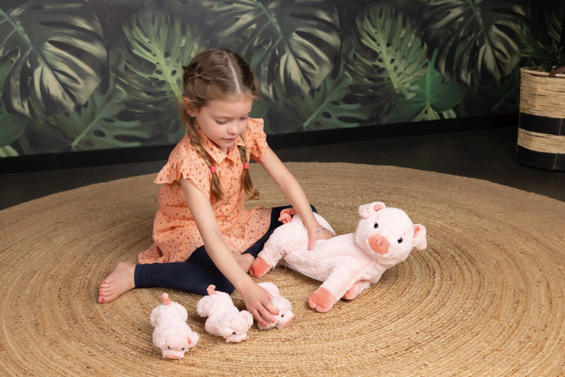 Pehmolelude komplekt Põrsakesed Emmega pakub väga pehmet ja meeldivat materjali, mis on ideaalne kallistamiseks ja mänguks. Emal on kõhul praktiline lukk, mille abil saab avada ja paljastada sees peidus olevad põrsakesed – see on suurepärane laste emotsioonide ja hoolitsusoskuste arendamiseks. See funktsioon on ühtlasi mugav reisidel, sest pojad saab turvaliselt peita.
