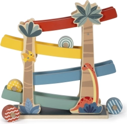 See puidust rada dinosauruste motiiviga on ideaalne interaktiivne mänguasi lastele. Koos eri värvi mustriliste ketastega, mis veerevad mööda radu, pakub see lõbusat viisi õppida liikumise ja gravitatsiooni kohta. Toote omadused: