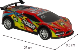 Punane võidusõiduauto THUNDER pakub pingelist sõiduelamust juba esimesest sekundist. LED-valgustus toob tegevuse esile ka hämaras ning kummirehvid tagavad hea haarduvuse ilma põrandat kriimustamata. Suurepärane nii siseruumides kui hoovis mängimiseks.