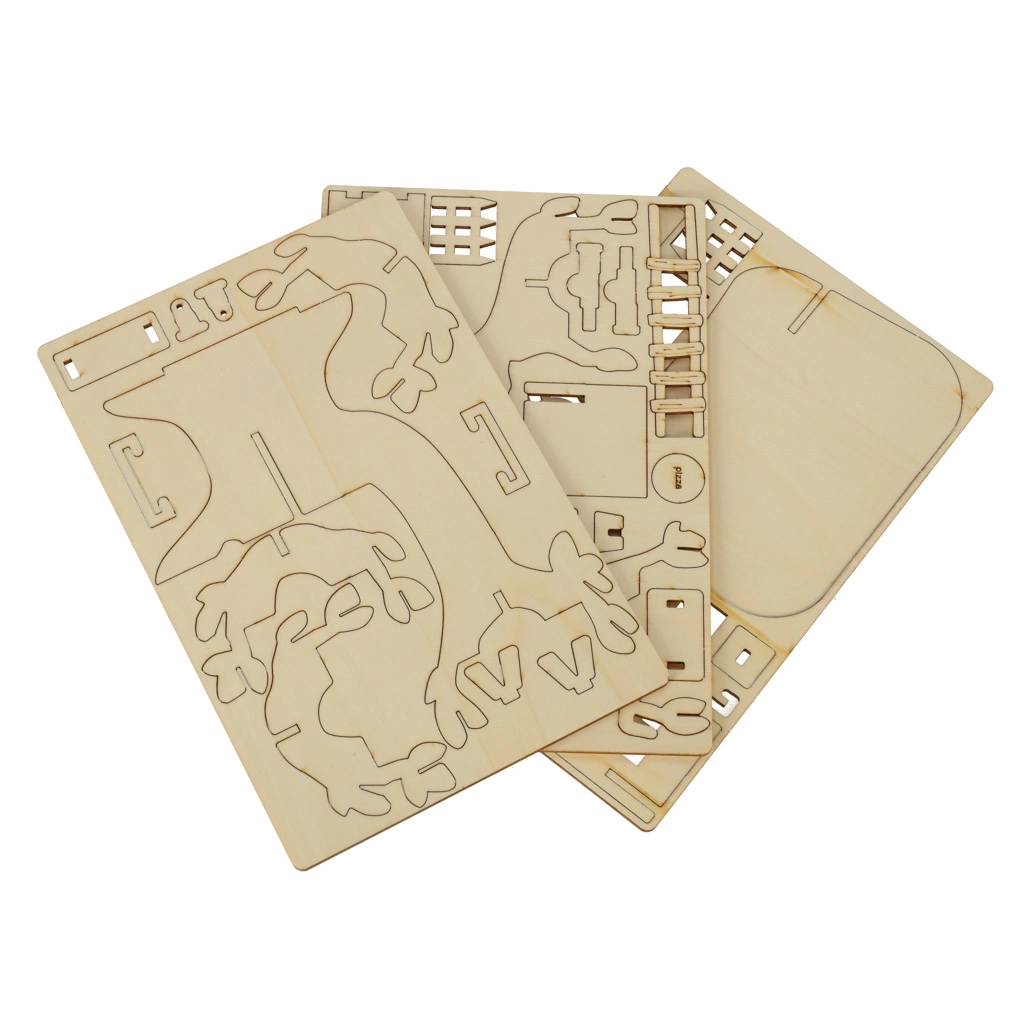 Täpsed puidust väljalõiked on lihtne välja suruda ja kokku panna stabiilseks onniks. Kaasasolevad värvid ja pintslid võimaldavad ainulaadset isikupärastamist.